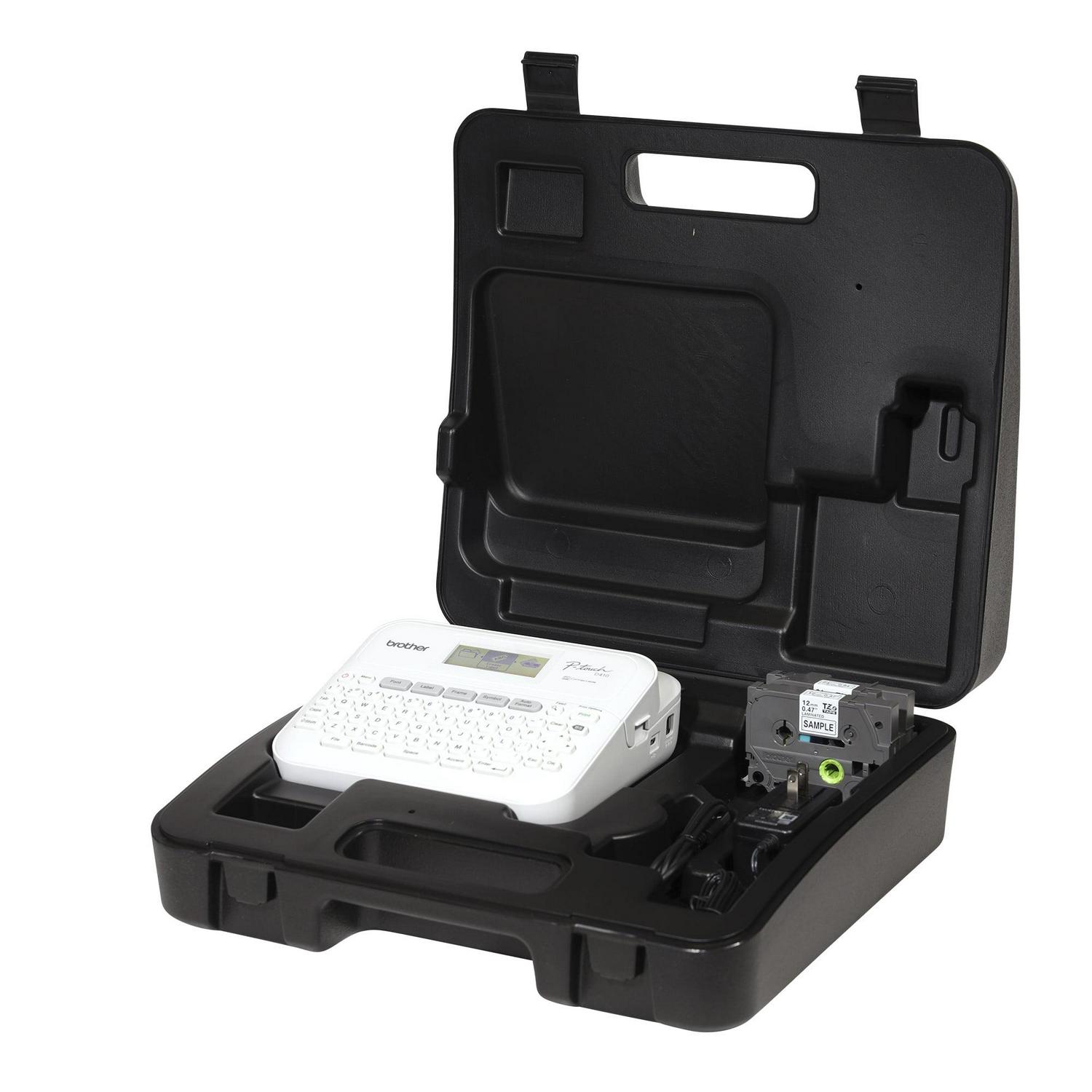 The Brother P-touch PT-D410VP Home / Office Advanced Label Maker propels users to the next level of home and office organization. Connect it to a PC or Mac with the included USB cable to harness the power of Ptouch Editor Software1. Designed to add even more flexibility to efficient organization solutions, it provides access to a wide selection of pre-designed templates. Prefer custom labels, instead Creating them is easy simply add symbols or barcodes using intuitive, built-in drawing tools. Plus, the P-touch Editor (1) puts ordering compatible Brother Genuine TZe label tapes just a simple click away. What can you organize with the Brother P-touch PT-D410VP We ve got plenty of useful ideas! Personalize office equipment or label drawers to keep supplies in the proper place, add a little organizational zen to your workspace, identify vials to keep samples separate, arrange file boxes for easy retrieval, track inventory with bar codes, and so much more. Use the built-in QWERTY keyboard, with easy one-touch formatting keys to create labels that help organize and personalize items in any home and office space. With the ability to preview labels before they re printed, the large 15-character, 2-line display screen promises the effortless ease of error-free confidence.