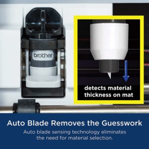 – NO MATERIAL SELECTION REQUIRED The included ScanNCut DX auto blade and auto blade holder uses true automatic material sensor technology to detect the thickness of the material with no blade adjustment or material selection required. Always perform a trial/test cut to confirm a successful cut