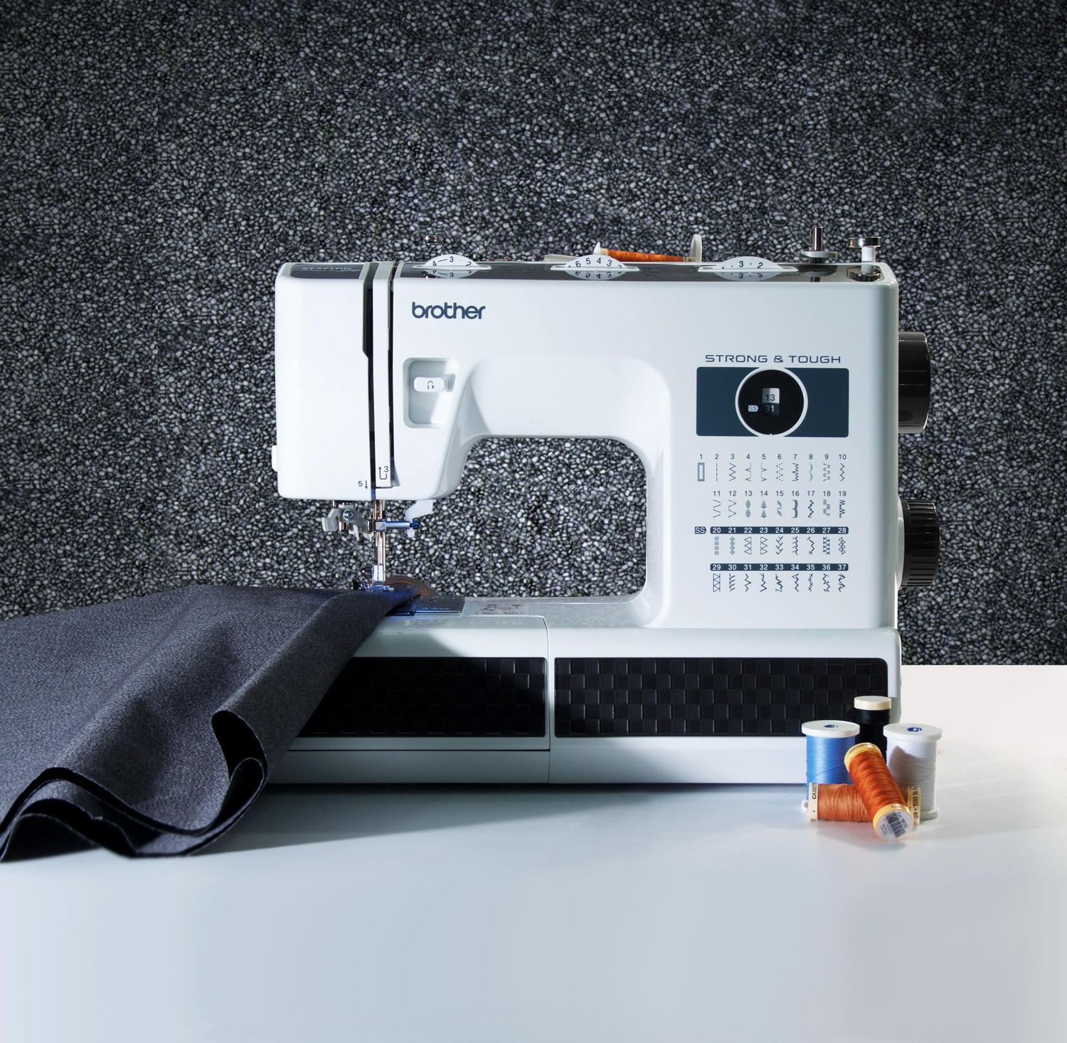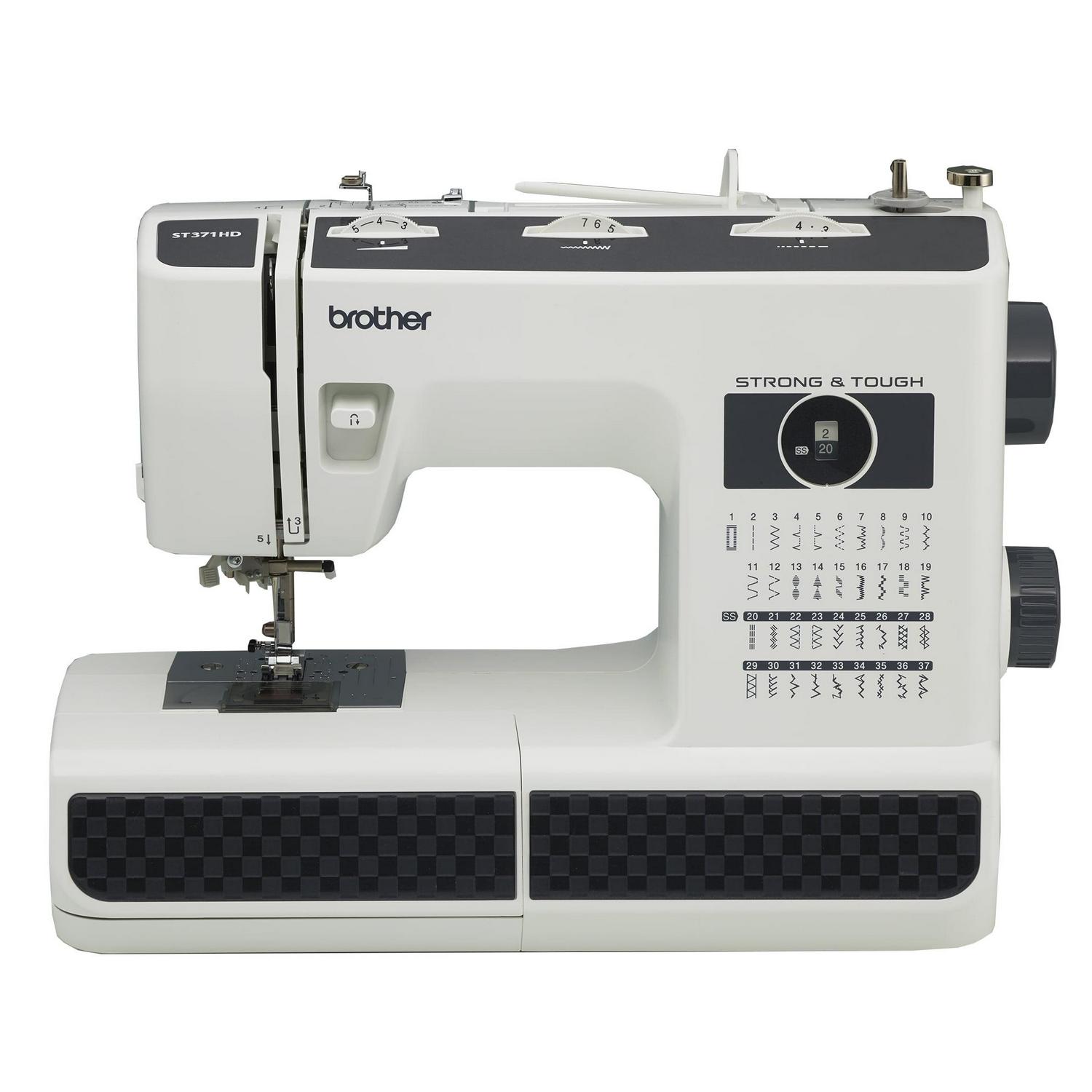 The Brother Strong & Tough ST371HD Heavy-Duty Sewing Machine is perfectly designed for those requiring flexibility and durability. Perfect for a beginner to an advanced user who is looking for a durable and robust sewing machine. This machine is excellent for mending thick to lightweight fabrics. The ST371HD includes a metal needle plate for smoother fabric feeding and heavyweight needles. The 37 utility and decorative stitches for blind hems, stretch stitches, buttonholes, zipper insertion, and more provides more value. The ST371HD comes complete with six sewing feet, including a spring action zigzag foot and nonstick, blind stitch, zipper, buttonhole, and button sewing feet. The built-in handle allows the Brother ST371HD to go from sewing table to storage in a snap. Operating at a maximum sewing speed of 800 stitches per minute, the Brother ST371HD can quickly and efficiently complete sewing projects without compromising quality.