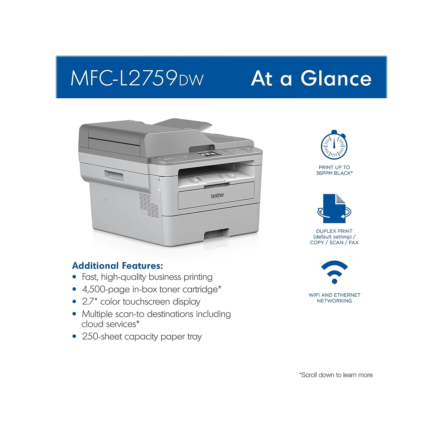 Brother Workhorse MFC-L2759DW Wireless Laser Multifunction Printer Monochrome