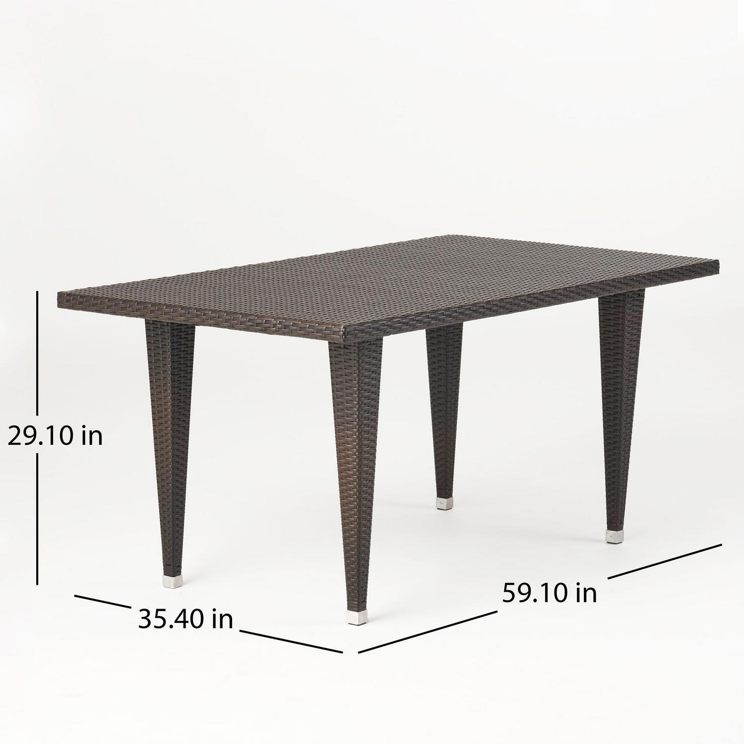 With its simple and stylish design, this Multi Brown PE Rectangle Table is an ideal choice for any patio setup. Seating up to 8 people, this table provides comfort and accessibility for all who are in attendance. Made from sturdy polyethylene wicker, it will not only withstand the elements, but also survive heavy use throughout the years.