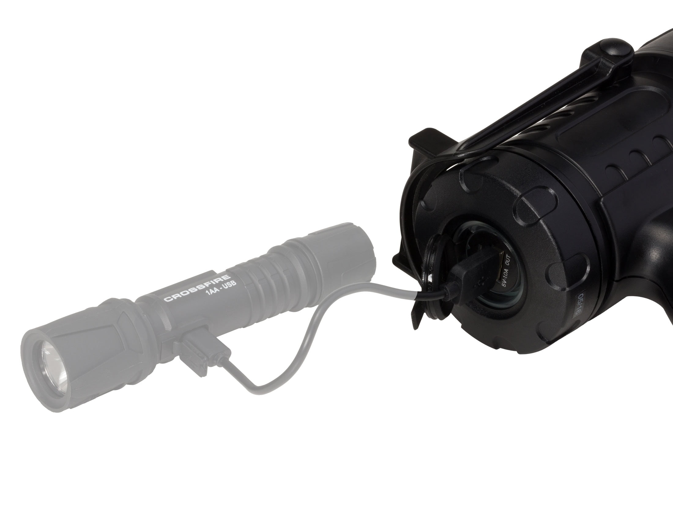 Max 915 lumens USB rechargeable spotlight with Power Bank, reaches up to 550 yards. Waterproof, submersible and floats on water, multiple lighting modes. This spotlight has it all: Lightweight, floating, USB rechargeable, multiple modes, and you can even use the Power Bank feature to keep your phone charged up in the field. Features Modes: High, low or flashing Powerful white LED that never needs replacing Power Bank: Draw power from the internal battery to charge other USB devices USB Charge: Recharge internal battery from a power source via USB cable provided Battery: 3,000 mAh Li-polymer (included) with color-coded charging and power-remaining indicator Easy, quick access to USB ports through waterproof rubber flap – Color-coded battery status and charging indicator Ultralight 14.5 ounce weight – Floats – Rubberized soft touch finish – Rugged polycarbonate housing and flexible rubber lens ring – Impact resistant to 1 meter – Built-in adjustable stand for hands-free use USB charging cable and lanyard included