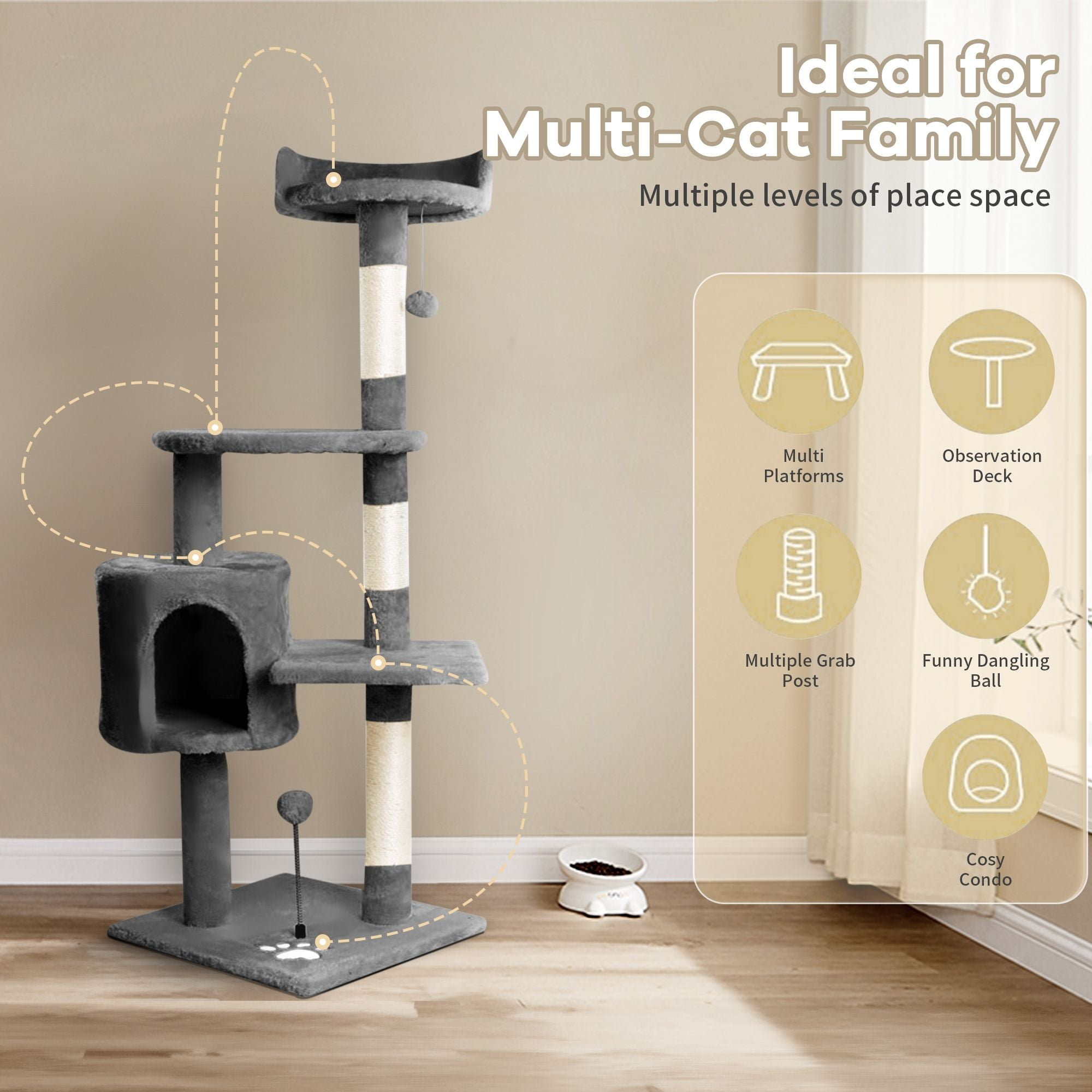 Renwick 71″ H Multi-Level Cat Tree with Condos and Scratching Posts,Dark Gray