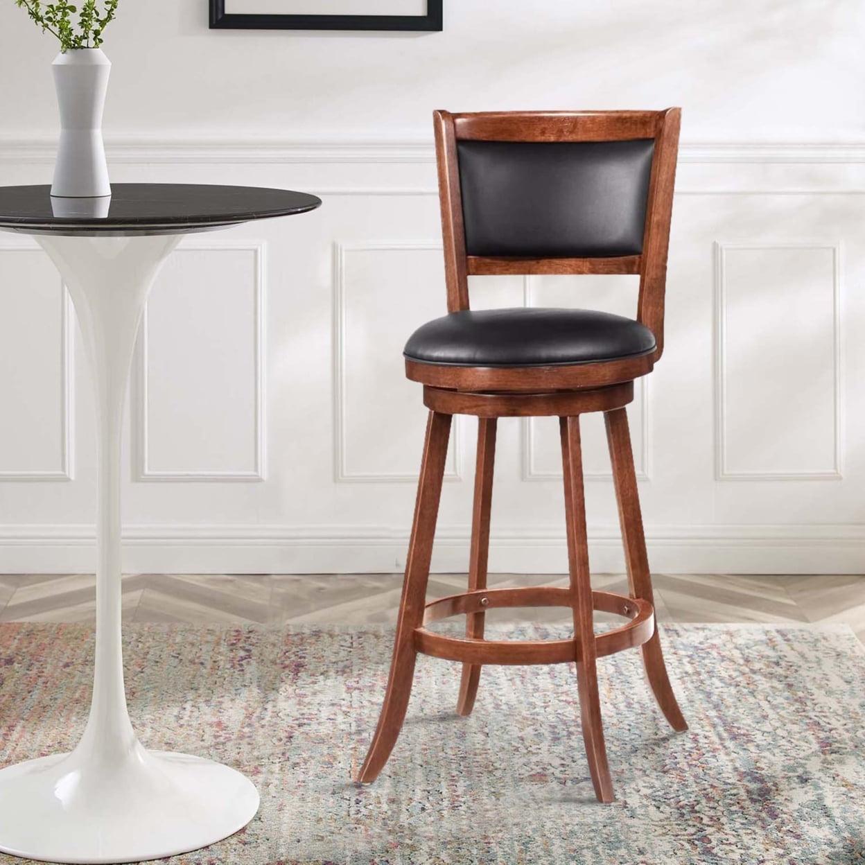 Contemporary 29″ Bar Stool with Upholstered Seat, Brown ,Set of 2- Saltoro Sherpi Add Functional And Homey Seating In Your Home Bar Or The Gathering Area In Your Smart Looking Bar Stools Features A Swivel Capability With A Gorgeous Chestnut( Brown) Finish, A Support And Foot Rest Ring, And An Upholstered Plush Seat And Back. Create Sophisticated And Beautiful Seating Options For Your Home With These Bar Stools.