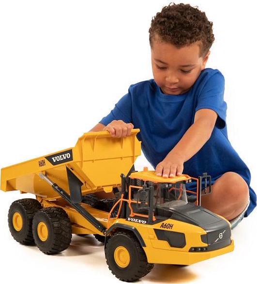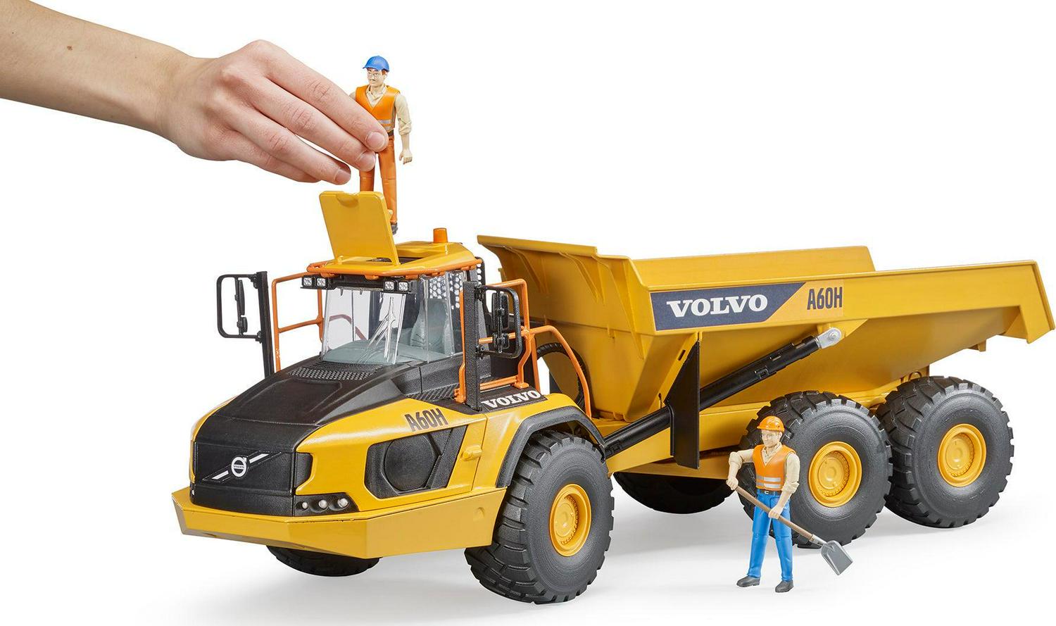 Tippers are true workhorses! Be it to transport bulk goods as part of moving dirt, asphalt as part of road construction, or overburden in quarries and gravel pits, this tipper is right for the job! As one of the most powerful tippers, the Volvo A60H has now been added to our construction equipment. A Bworld figure can take to the wheel of the vehicle through the roof hatch of the modern cab and young tipper drivers can load and unload the enormous tipping trough.
