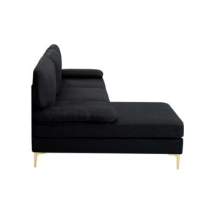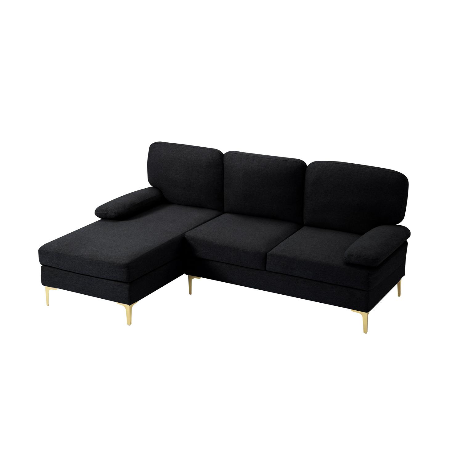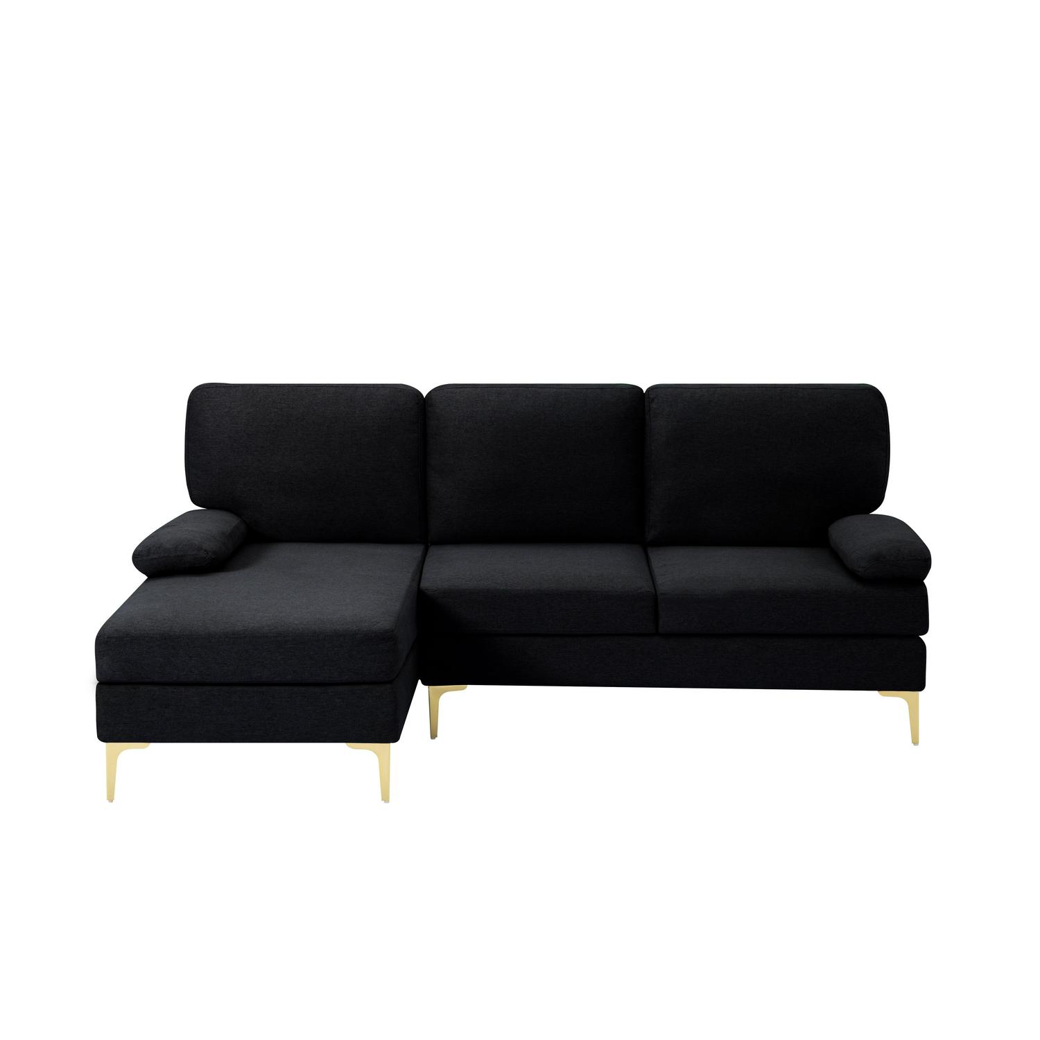 Description / Features – 79.5 Left hand facing Sofa & Chaise. The modern design sectional sofa meets all your decorating needs, sink into this sofa chaise and enjoy a relaxing time at home or office. – Structured in a solid wood frame, which it s sturdy and durable. – Upholstered with polyester fabric, back cushions and seat cushions are removable. – Sturdy metal legs in golden color offers distinctive contrast, legs with non-slip foot pads to protect the floor from scratches. – Two detachable armrest pillows. – Compressed back cushion & seat cushion. Please rebound 72 hours after opening the package for your perfect use. Caution – Please do not open the compressed packaging until your sofa frame is completely assembled, otherwise it can t be repacked in original packing way to return. – Please review the product dimension and check if it s suitable for your living room. – It might be have color difference due to photograph lighting, or computer monitor displayed. It s not quality issue.