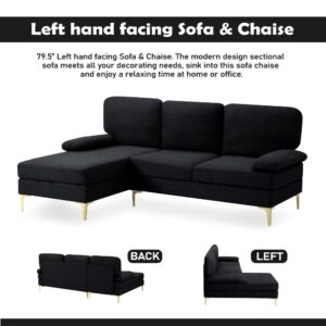 BSHTI 79.5 inch Left Hand Facing Sofa,Modern Design Sectional Sofa Two Armrest Pillows for Livingroom