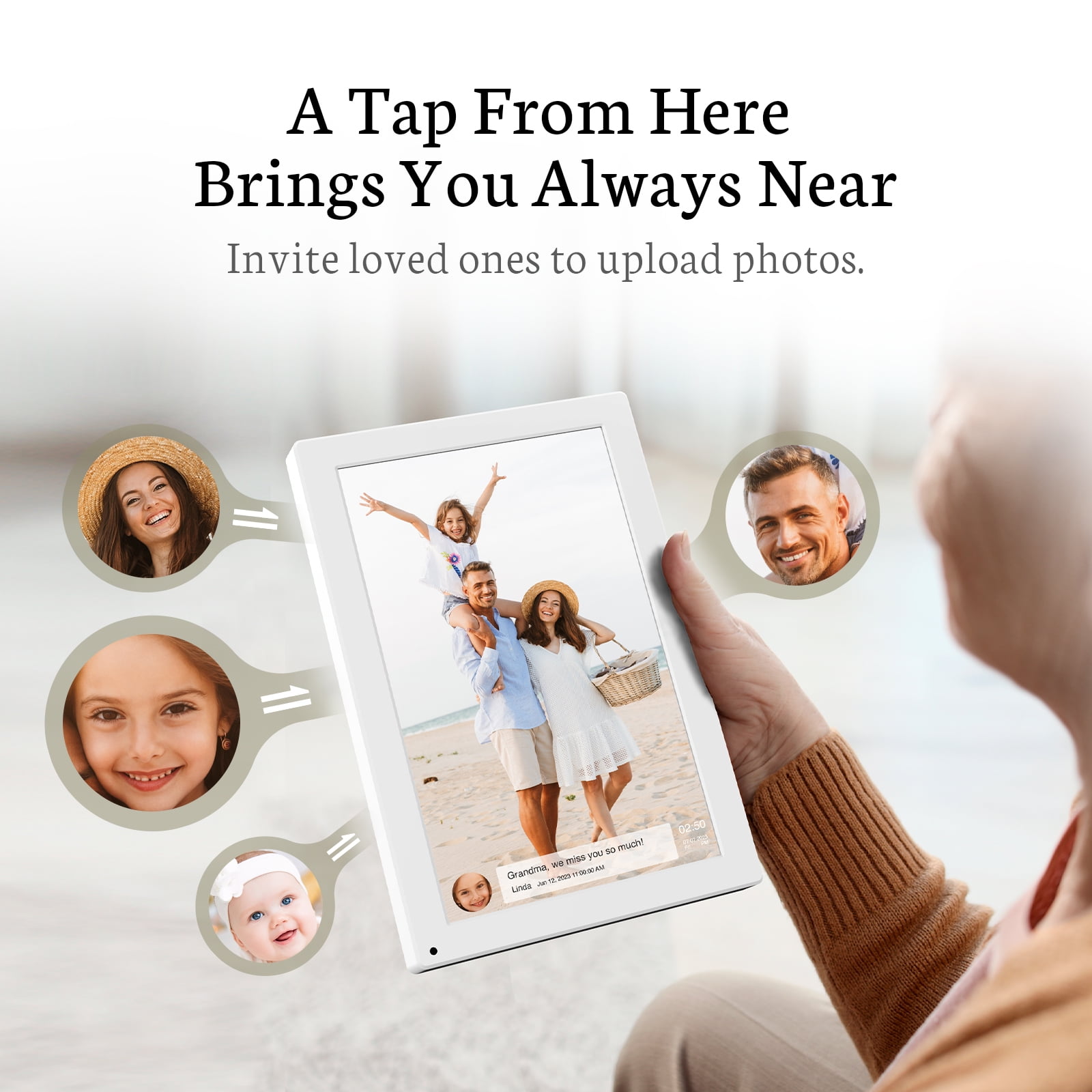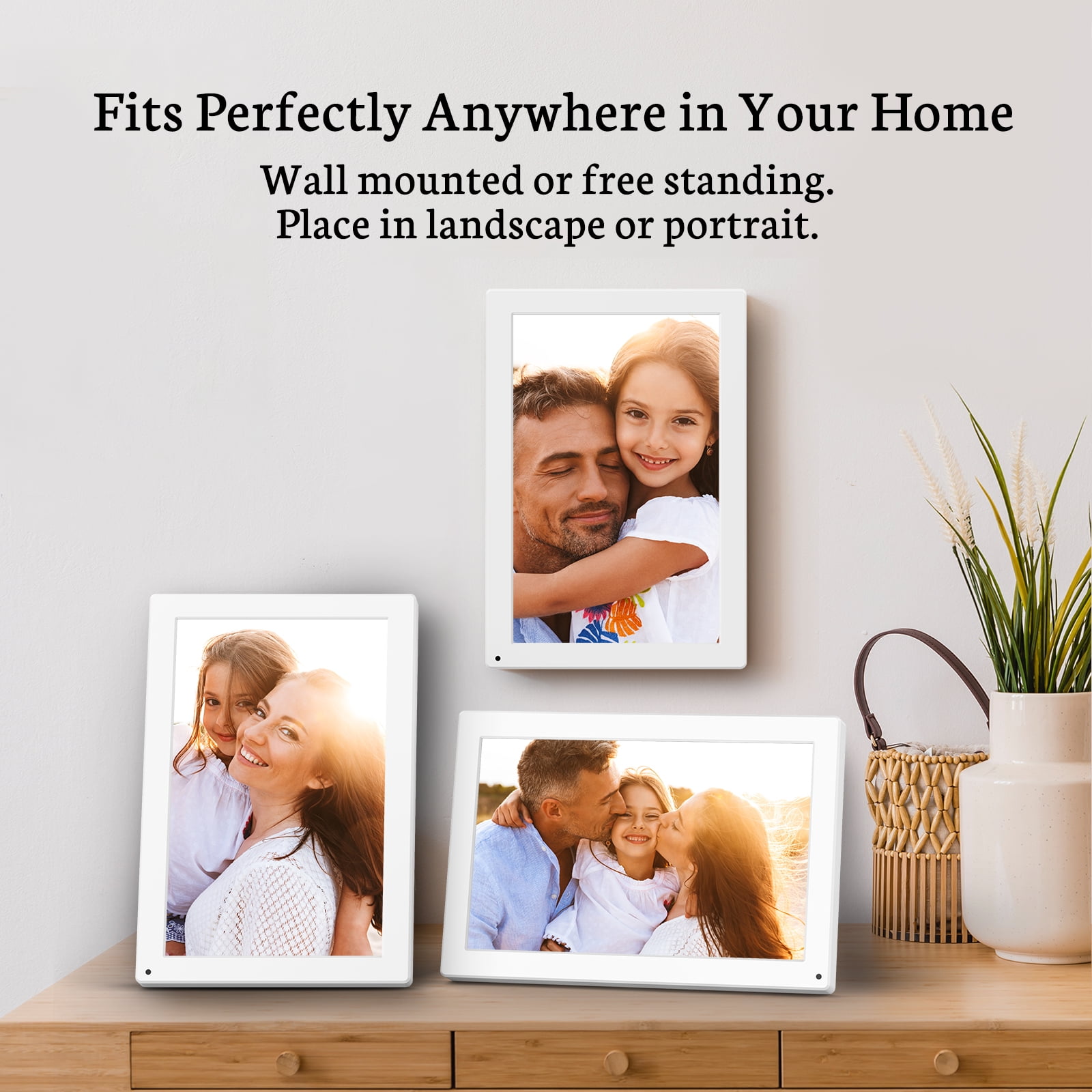 BSIMB 32GB 10.1 inch Digital Photo Frame with HD IPS Touch Screen, Motion Sensor, Auto-Rotated, Wall-Mounted, Sharing Photos/Videos via App Email, White, Gift for Grandparents