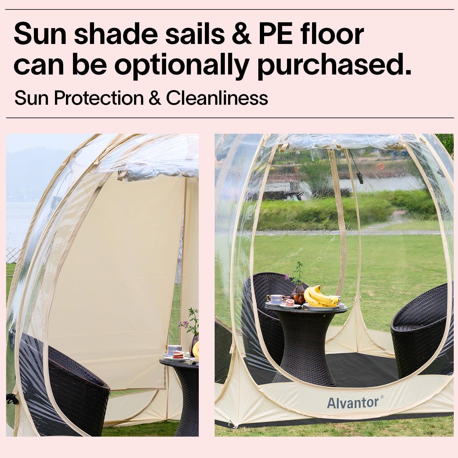 – High Quality: The structure of the tent will not be bent or unusable due to long-term use. High-definition PVC fabric can be cleaned easy. You can use hot tube, Jacuzzi in the interior, it can help keep warm in cold days, you will feel comfortable taking shower inside.