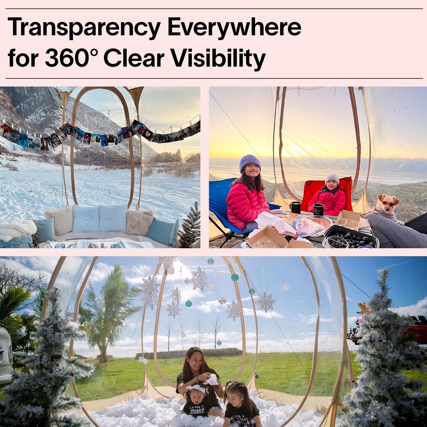 – Patented Design: Patented pop up style hot house. Creator of pop-up winter bubble house. Due to the unique frame and the folding way, it is easy to take away. The ventilation windows on the two doors provide the perfect air ventilation. High definition PVC fabric will not block vision. Enjoy the excellent winter scenery outdoors with the 360-degree view. The 6 extra sandbags, 12 guylines and 12 metal mounting stakes can also provide more stability in windy conditions.