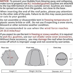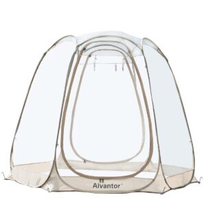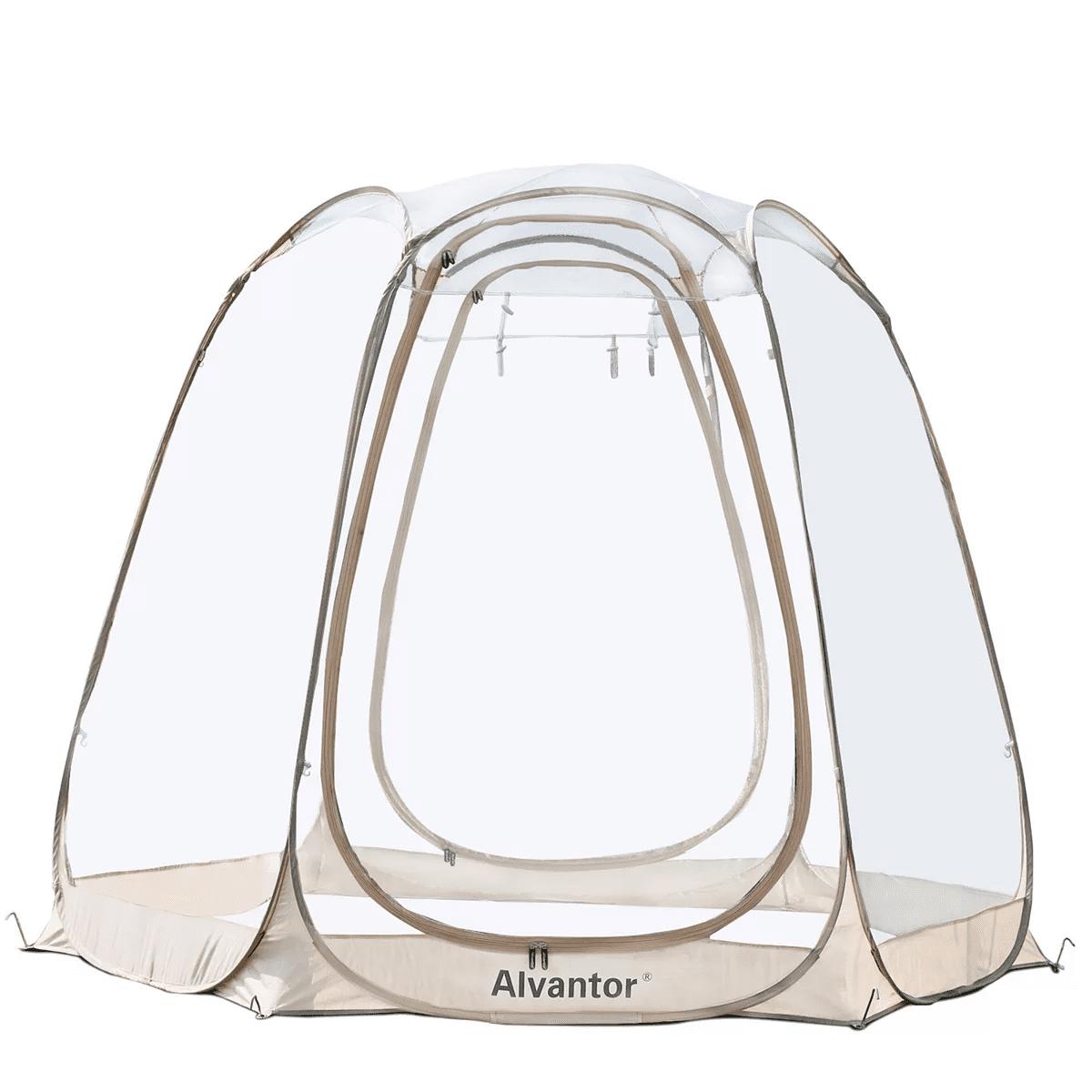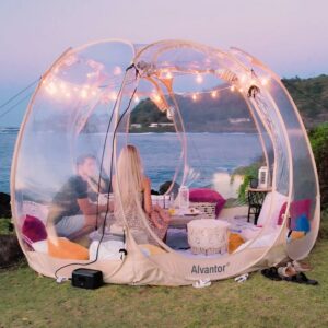 Enjoy the outdoors by using Alvantor 10′ x10′ Pop Up Winter Bubble Tent Hot House. It’s pop up style and easy to set up, so do-it-yourselfers can put it to use quickly. You can enjoy sunshine and beautiful scenery and feel warm all the time outdoors in winter with the super transparent PVC fabric. It has two zippered doors for simple entry and exit as well. It is the best choice for picnic, Hot Tub, Jacuzzi, barbecue, afternoon tea, and party on the backyard, garden and park in winter! This pop up screen gazebo has plenty of space, light-weight and fold compact for easy transport.