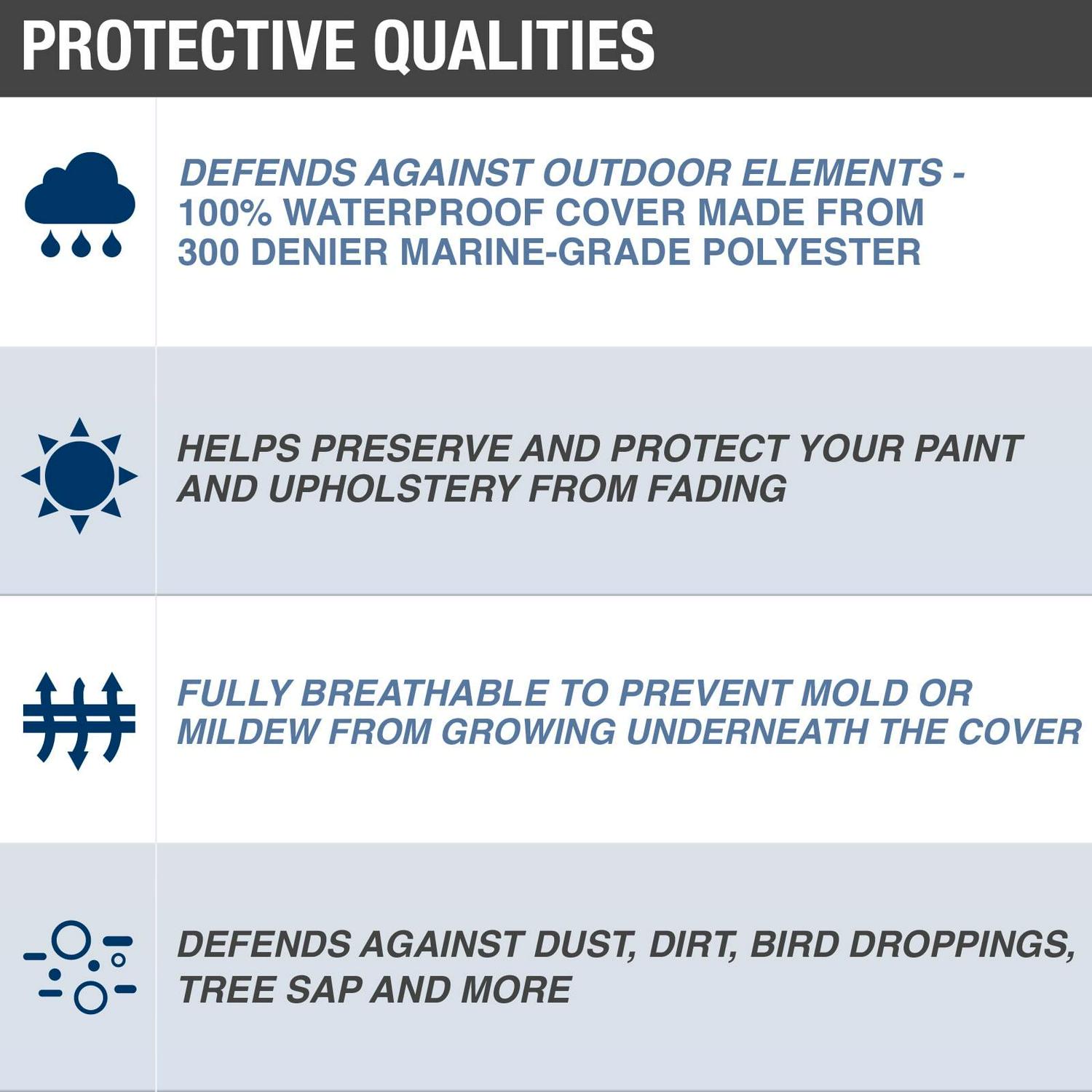 – 100% waterproof pontoon boat cover made from 300 denier polyester