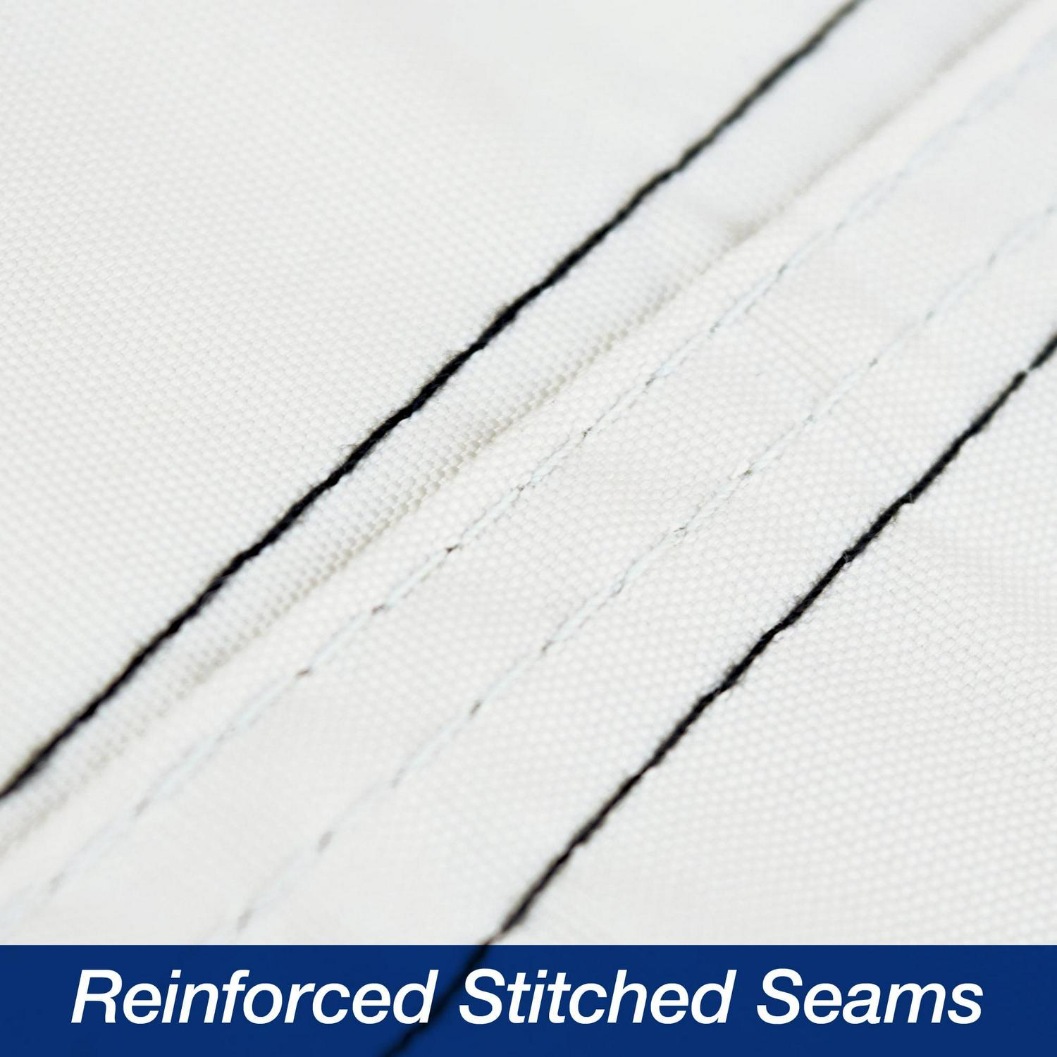 - An adjustable strapping system helps keep the pontoon cover secure in windy weather conditions