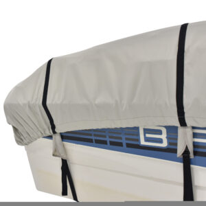 The Sportsman 600 denier boat cover by Budge Industries is guaranteed to provide superior protection to your boat. This waterproof boat cover will repel snow, hot sun and heavy rain. The 600 denier polyester material is UV treated for maximum sun and heat protection to protect your boat’s upholstry. A heavy duty shock cord hem gives the cover a Semi-Custom fit. This heavy duty boat cover comes with a top and bottom strap and buckle system, making it exceptionally durable when trailering – so you can safely tow your boat to the shore. This cover is available in a blue or gray color.