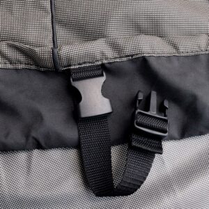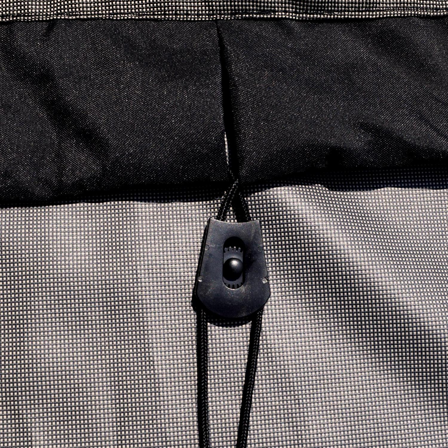 Our Patio Bar Table and Chairs Cover provides durable protection for your outdoor patio furniture. Designed to match your patio set, this collection comes in an black and ivory tweed pattern with dark gray piping and is contoured to fully cover your patio furniture. The Mojave collection by Budge combines the long-lasting durability of our machine-woven 600 denier polyester with StormBlock technology and UV protection. With this technology, water rolls right off this cover, taking mud, tree-sap, dirt and bird droppings with it. Meanwhile, our strap and buckle system makes it easy to fasten your cover to the legs of your patio furniture for added security in windy weather conditions and sewn-in air vents prevent condensation, preventing the build-up of rust, mold and mildew. Cover Measures: 80″ Dia. x 42″ Drop.