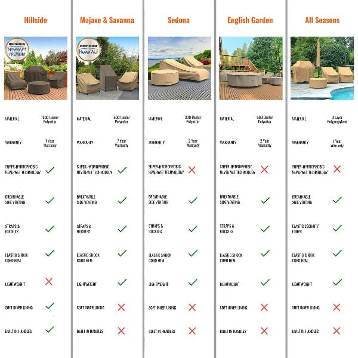 Made from brown and beige, heavy duty 600 denier Polyester Provides long-lasting all weather protection to your patio chaise lounge chair 100% waterproof and UV Resistant Strap and buckle system keeps cover in place Sewn-in air vents reduce condensation Measures 32″ High x 64″ Wide x 80″ Deep Features ultrasonically welded seams Budge cover is fully breathable to prevent build-up of condensation
