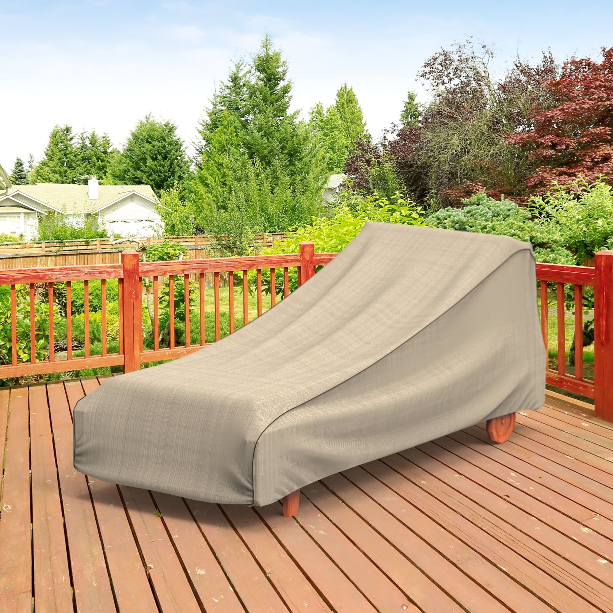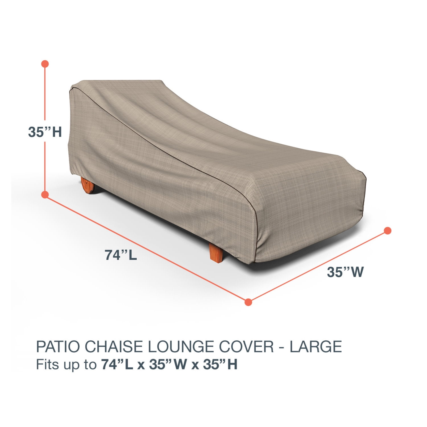 Our Patio Chaise Lounge Cover, Large provides durable protection for your outdoor patio furniture. Designed to match your patio set, this collection comes in an black and ivory tweed pattern with dark gray piping and is contoured to fully cover your patio furniture. The Mojave collection by Budge combines the long-lasting durability of our machine-woven 600 denier polyester with StormBlock™ technology and UV protection. With this technology, water rolls right off this cover, taking mud, tree-sap, dirt and bird droppings with it. Meanwhile, our strap and buckle system makes it easy to fasten your cover to the legs of your patio furniture for added security in windy weather conditions and sewn-in air vents prevent condensation, preventing the build-up of rust, mold and mildew. This collection will compliment nearly any preexisting patio decor, all while extending the life of your outdoor furniture. Includes a 7-year warranty. This cover measures: 74″ L x 35″ W x 35″ H.