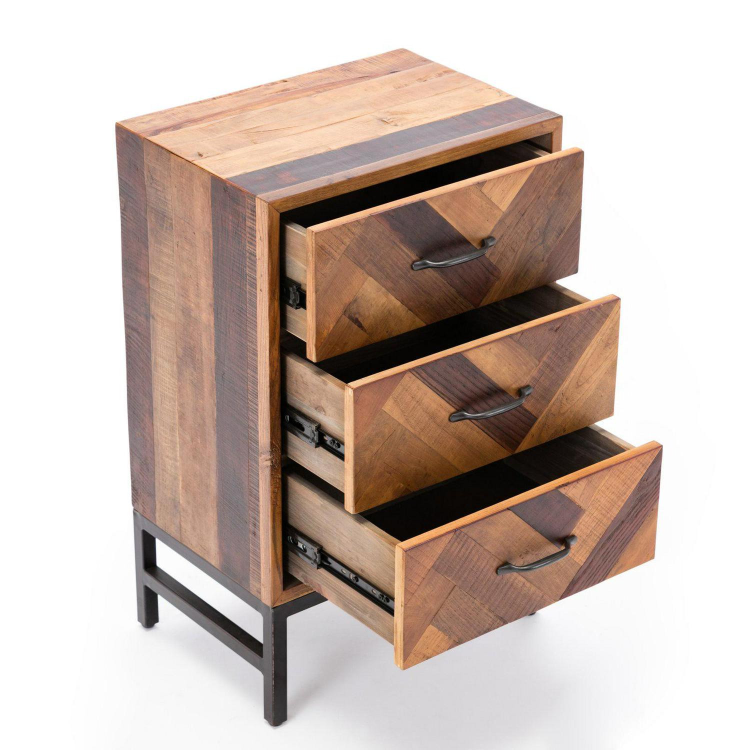 Burnham Home Benton Oak Wood 3 Drawer Nightstand