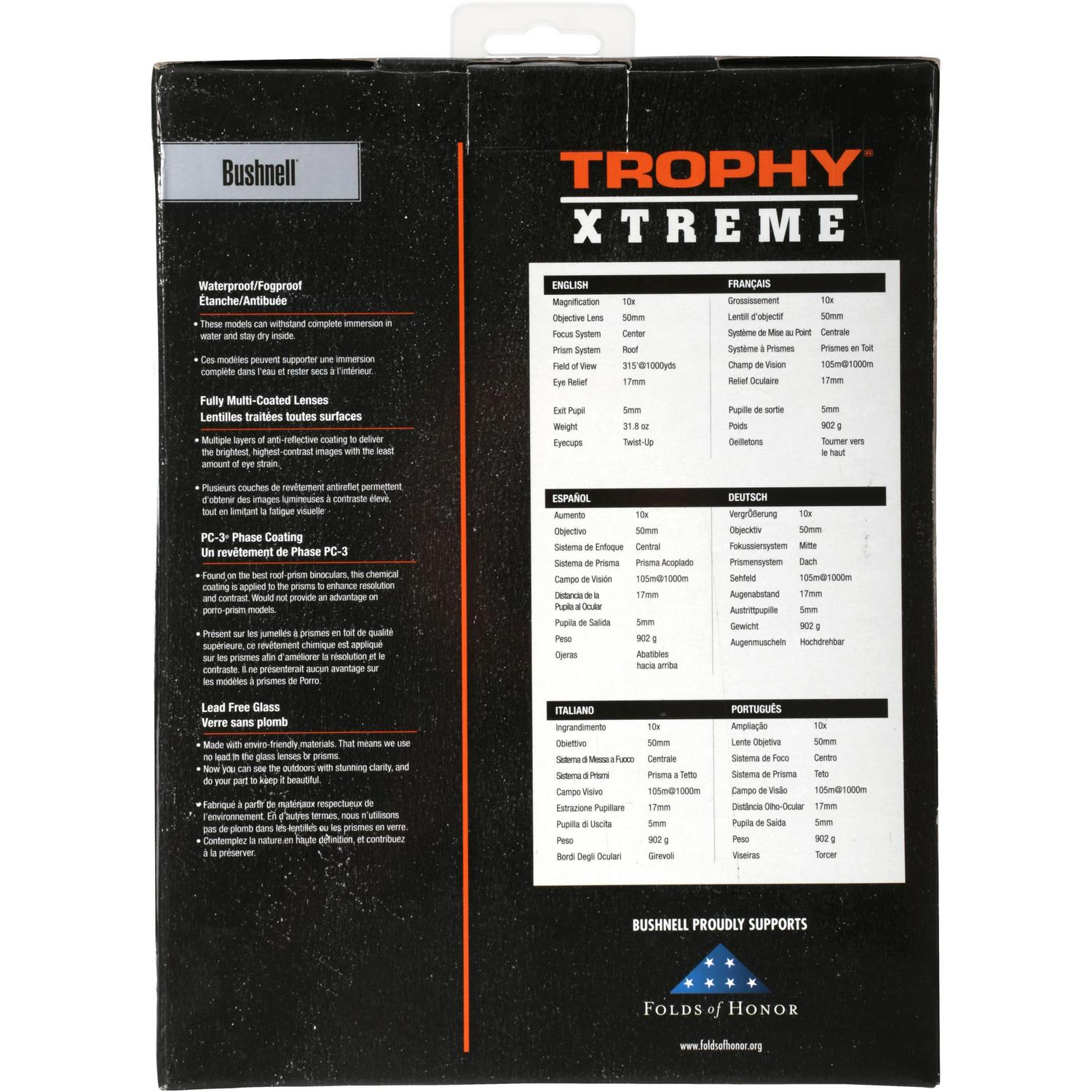 - Features: BUSHNELL TROPHY XTREME 10X 50MM BINOCULAR