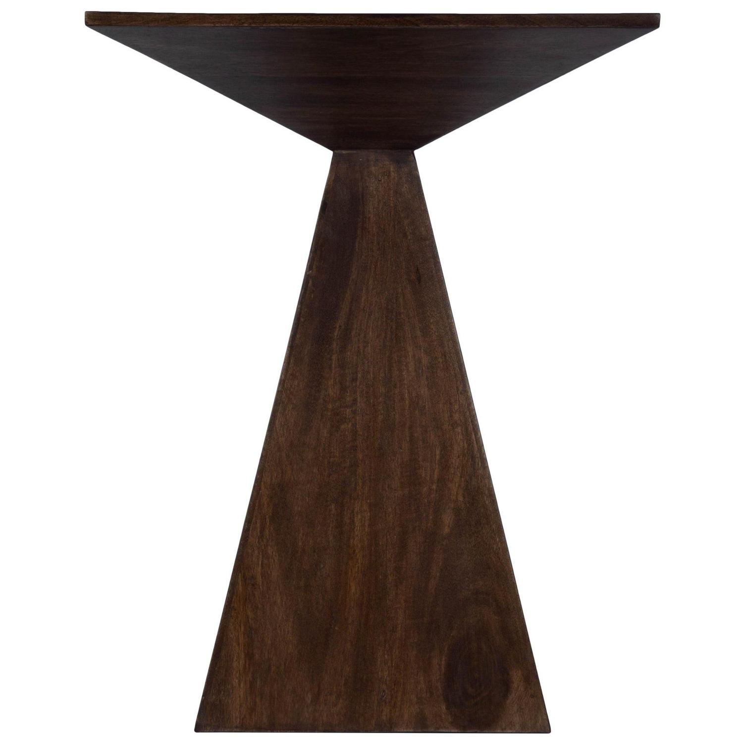 Play with sculptural design thanks to the Butler Specialty Titus Dark Brown Modern End Table. Constructed of solid mango wood, this end table has a unique, triangular silhouette. The dark brown finish is neutral but striking at the same time.