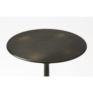 Smooth rounded curves seemingly emanate from the base of this round iron end table. Coupled with a matte black finish, it is graceful in appearance with a subtle artistic flair.