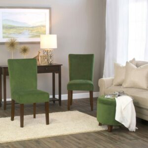 – Made up of wooden frame over which green color velvet fabric is draped.