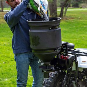 – Durable, rustproof, poly hopper features a capacity of 15 gallons and a broadcast spread width of up to 30 feet