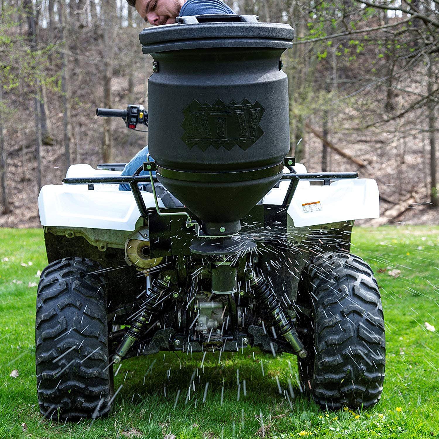 Get the most out of your ATV by using it to sow seeds and fertilizer in the spring, spread salt and ice melt in the winter, and distribute animal feed year round with the Buyers Products ATV 15-Gallon Broadcast Spreader. Simply mount this spreader to your ATV’s tabular utility rack and get going. The broadcast spreader’s sealed, 12-volt motor quickly distributes up to 15 gallons of seed, fertilizer, feed, salt or other free-flowing materials. The spreader features an adjustable shut-off feed gate, and controls for the motor that are easily accessible from the seat of your ATV. The broadcast spreader also includes a poly lid that protects your materials from the elements. You can master the outdoors by using your ATV for its fullest potential with the Buyers Products ATV 15-Gallon Broadcast Spreader.