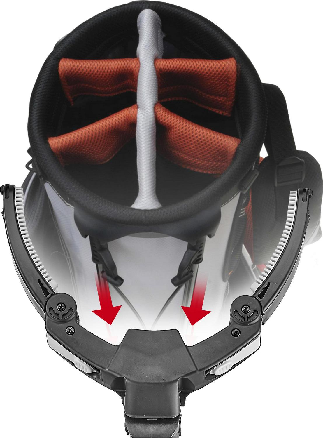 > The new Clamp type golf bag holder secured all size and type of golf bags easily and conveniently