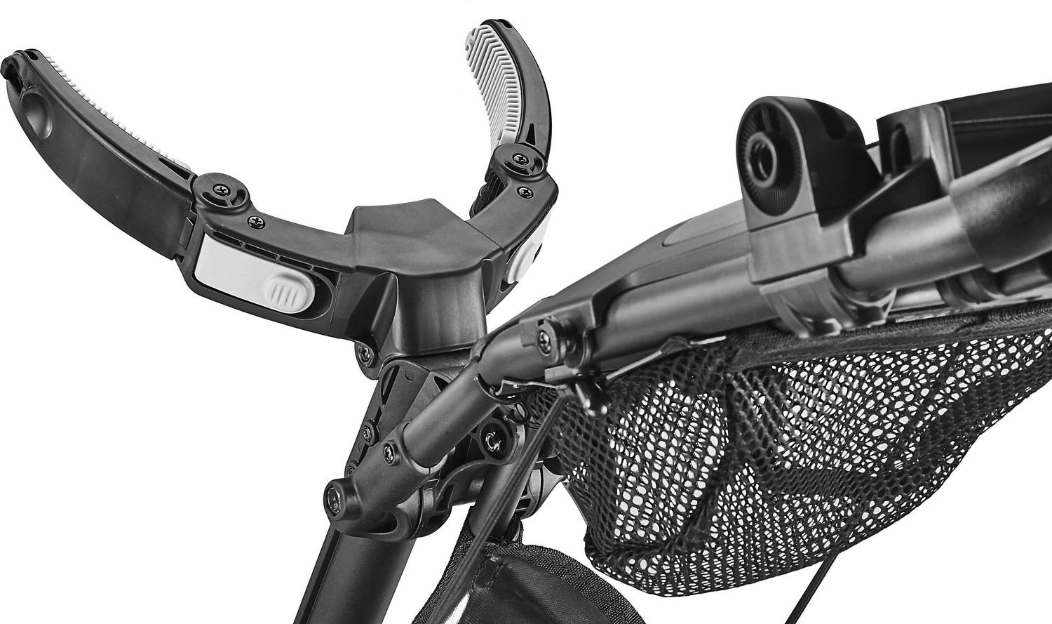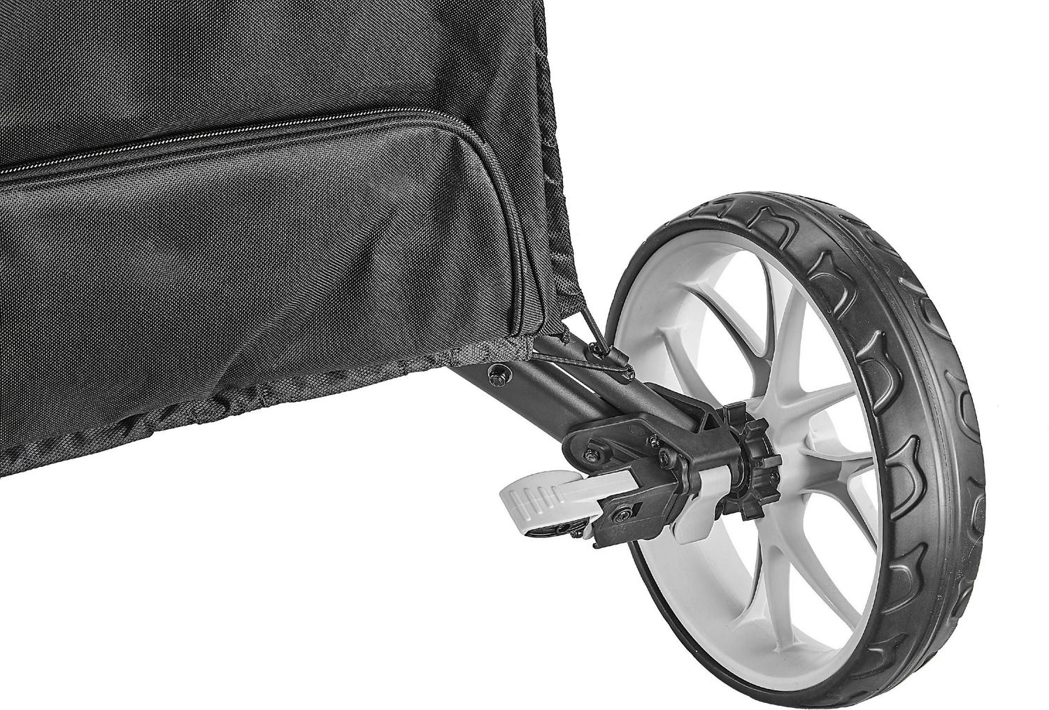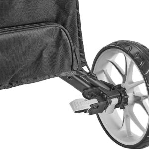 > Patented one-click mechanism folds the cart to compact size (17″ x 14″ x 26.4″) in one step