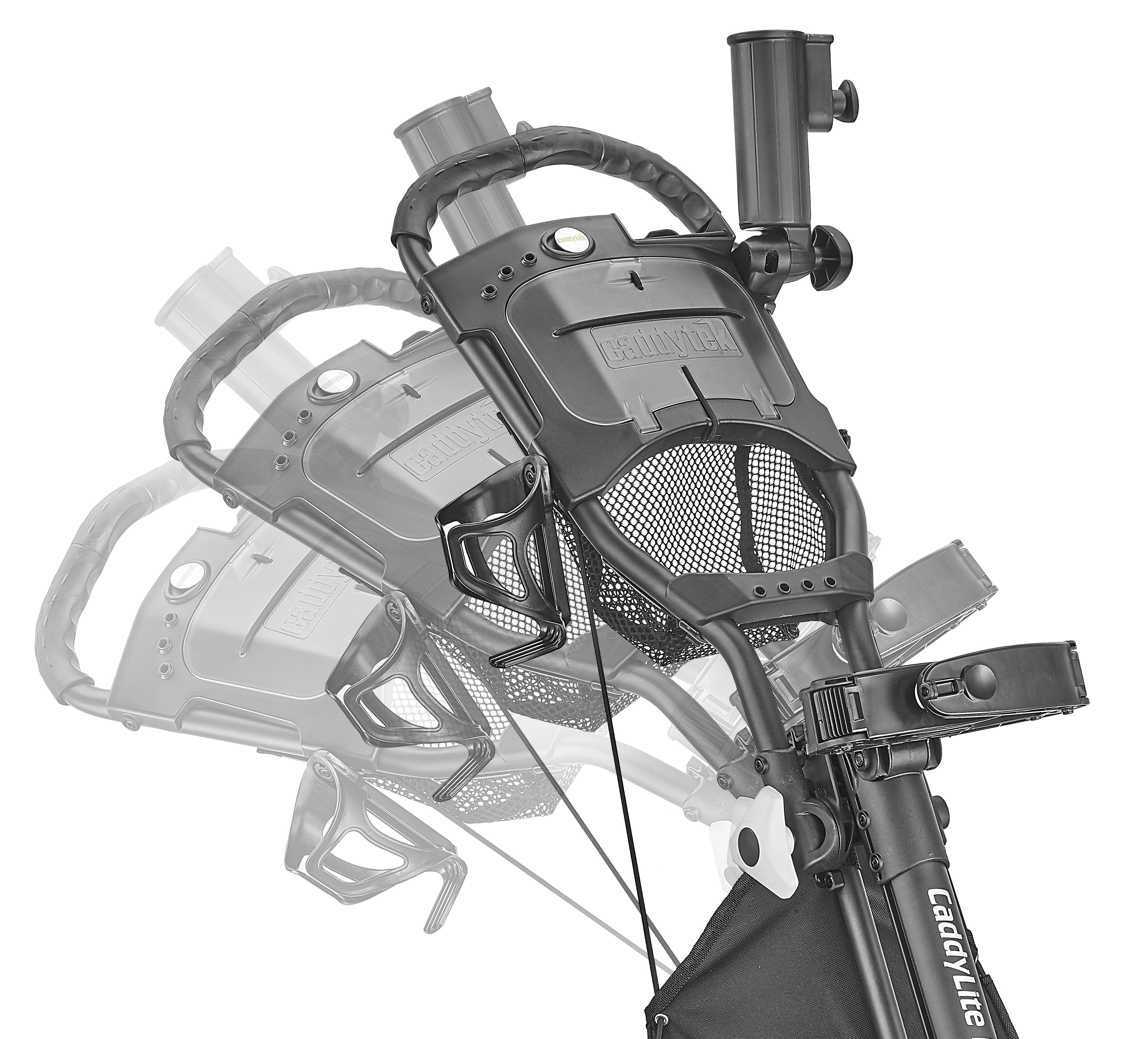 CaddyTek CaddyCruiser ONE Version 8 Silver, with the new scorecard holder/storage compartment. Plus the new clamp type golf bag holder, the 2018 version of CaddyCruiser ONE still comes with the advanced ?One-Click Folding? mechanism. It is convenient and easy to fold in one simple step. The new and big wheel make it rolling easily in the high grass. The strong, stable 4-wheel body design maintains a unique lightweight and compact folded size for easy storage in car trunks before or after your round of golf. Golfers can push the cart effortlessly on all types of terrain with cushioned front wheels, multiple handle positions, and smooth rolling ball-bearing wheels. The CaddyCruiser ONE V8 has plenty of storage and features that most golfers want including umbrella, scorecard, and beverage holders and the unique/patented basket with cooler built in. Rain or shine, cart your clubs around the green in style and enjoy the game!