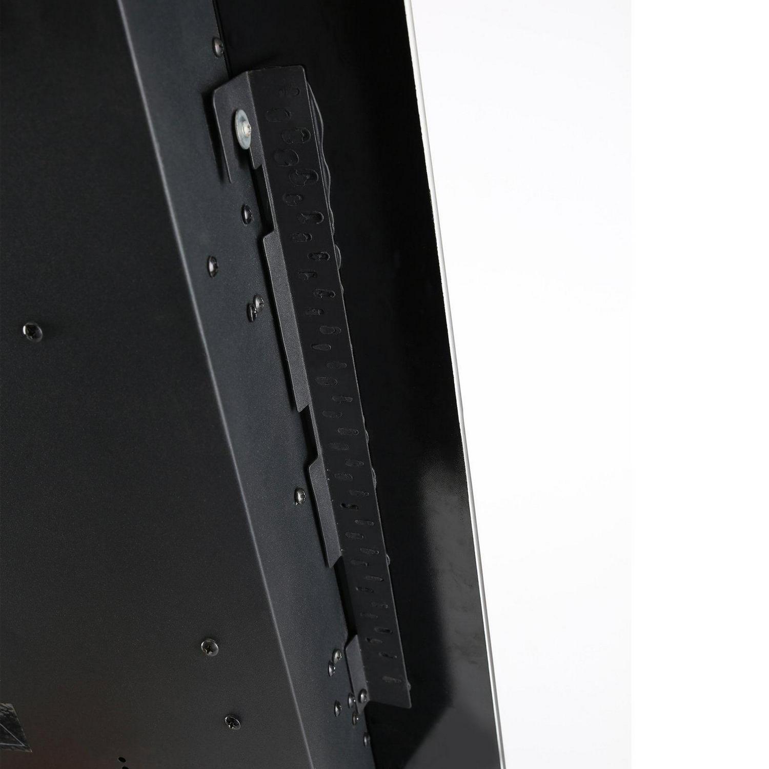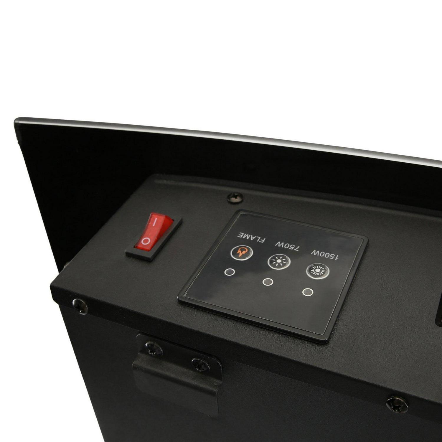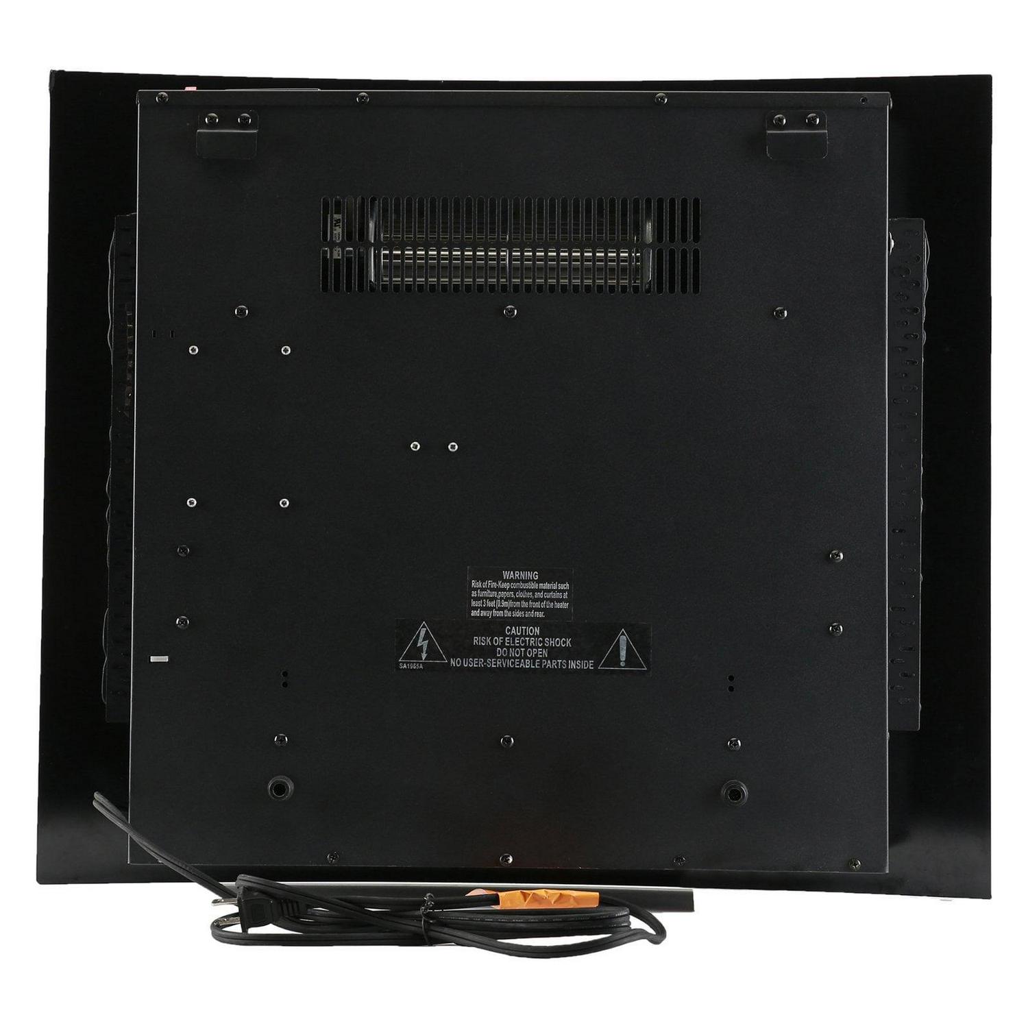 Enjoy the warmth and glow emanating from the Caesar Fireplace 26 in. Wall Mount Electric Fireplace with Remote Control. This steel and pebble fireplace can heat up to 300 square feet using two heat settings. If internal components reach a certain temperature the included overheat safety feature will turn the fireplace off to keep you safe.