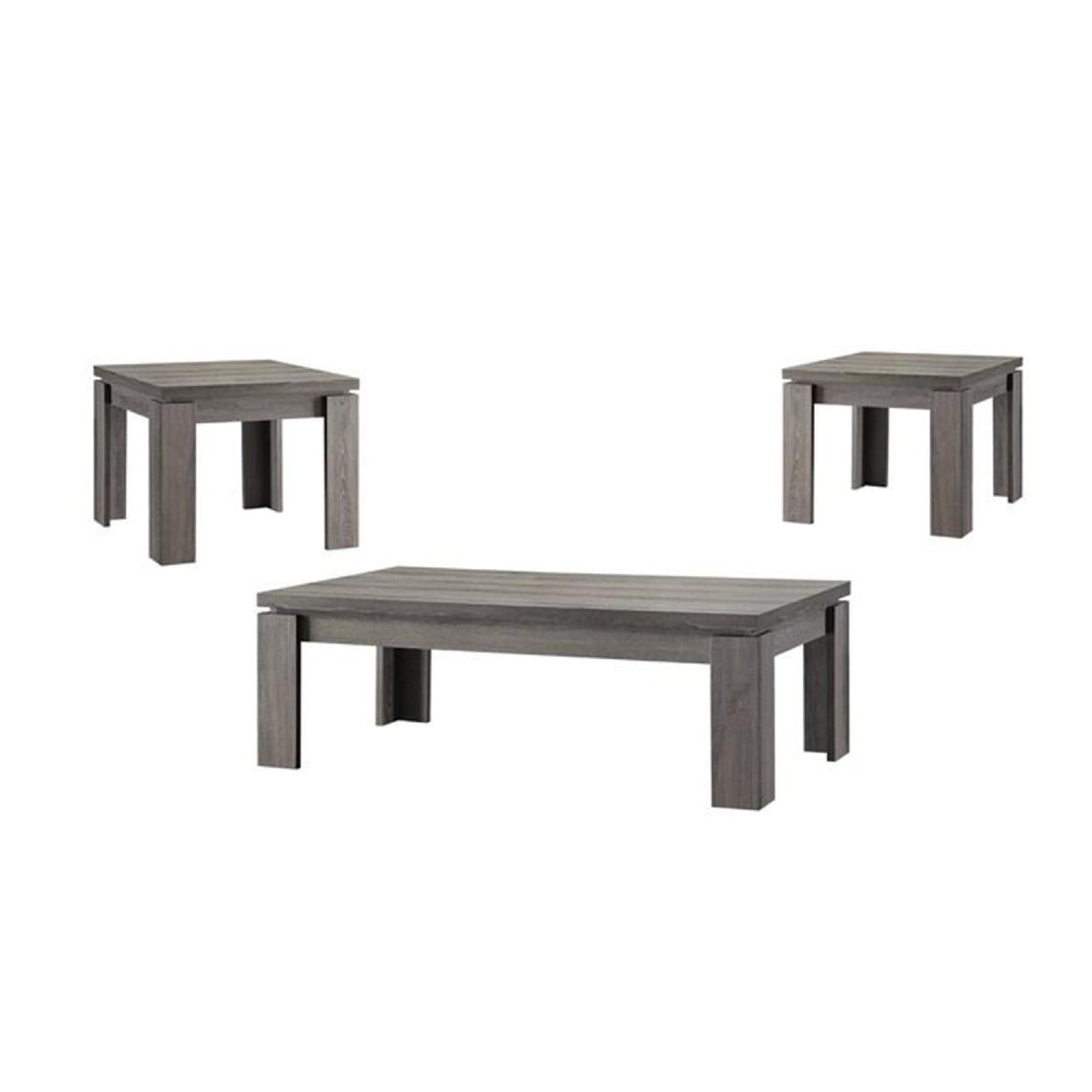 Enormous 3 piece weathered Gray occasional Table set- Saltoro Sherpi If you have an eye for unique home dcor items then we have the right product for you in the form of this classy contemporary styled three piece occasional table set that has a simple yet strong design and is finished in a weathered Gray with floating table top. The lovely center table accompanied by two small side tables makes it a super useful but stylish decor item.