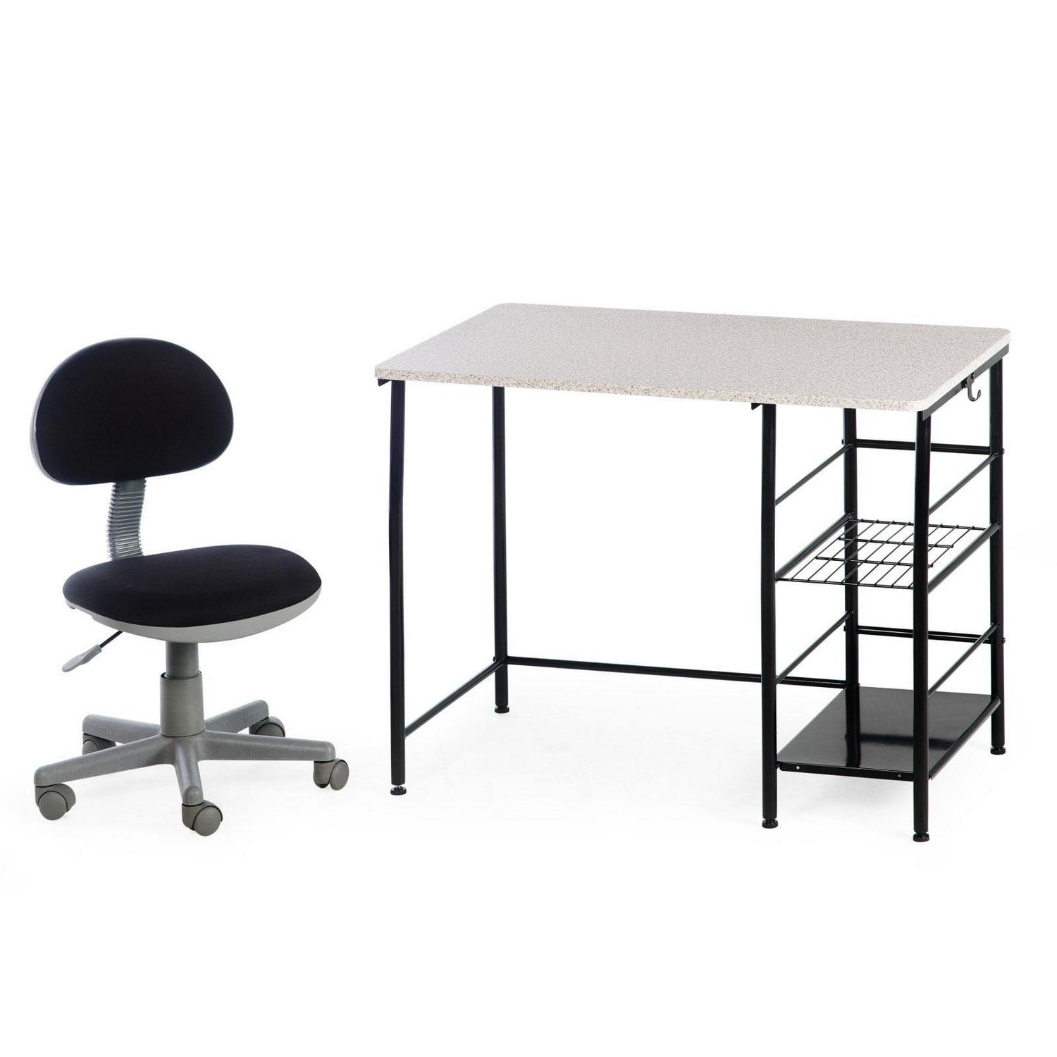 Calico Designs Study Zone II Writing Desk (39.5 W x 23.75 D top) and Task Chair Set in Black and Spatter Gray