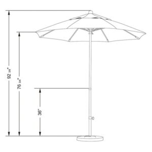 There’s no environment too harsh for the California Umbrella 7.5 ft. Complete Fiberglass Sunbrella Patio Umbrella. Commercial grade. Not only are the 8 sturdy ribs maked of ultra-strong, ultra-flexible fiberglass, but the pole is as well. Entirely constructed of highly durable fiberglass, this is the most weather-resistant frame on the market. A solid resin hub works to connect the pole and ribs. Suitable for use with many table styles, the bottom portion of the pole is adjustable for bar height and standard height use. The pole measures 1.5-inches diameter so it accommodates the umbrella holes of most patio tables. A 7.5-foot diameter canopy is perfect for use with bistro tables and small cafe tables. Choose from 3 grades of Sunbrella fabrics. Sunbrella fabrics have a 5 year manufacturer warranty against fade, rot, and mildew.