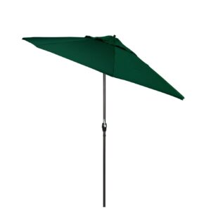 This large 9 foot umbrella offers the residential owner a beautiful market design. The aluminum frame has a simple crank to open and auto tilt design. This style offers the user-friendly, crank-to-open, crank-to-tilt feature that consumers have grown to love. Owners can simply crank open their umbrella and push a button to tilt the canopy toward the sun. This umbrella also features Olefin fabrics, which are made with high durability synthetic Olefin fibers that offer improved fade resistance over lesser grade fabric materials like polyester and cotton. This umbrella also features Olefin fabric, which is composed of highly durable synthetic Olefin fibers and offers a 1 year fade resistance warranty.