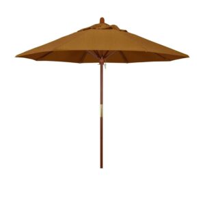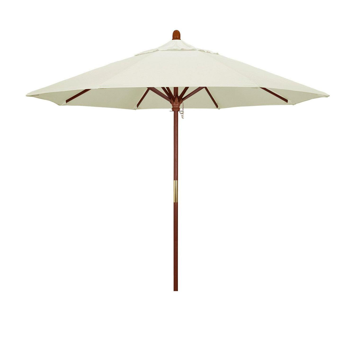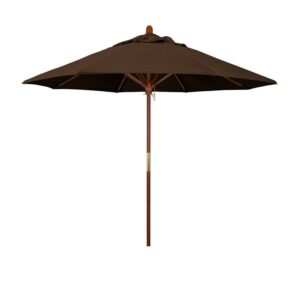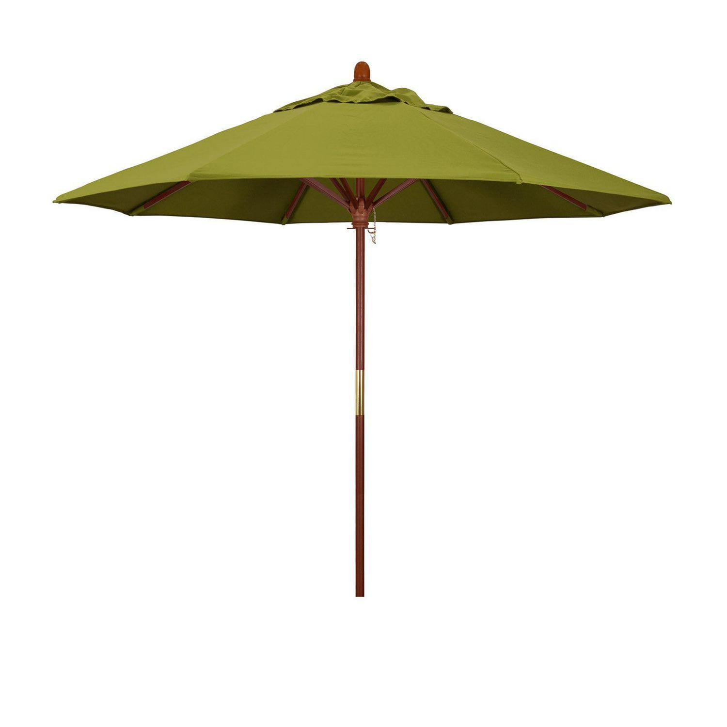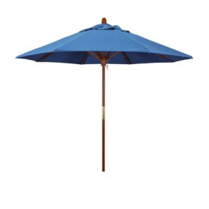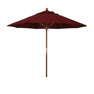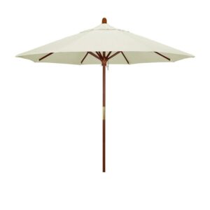 The deluxe California Umbrella 9 ft. Marenti Pacifica Wood Market Umbrella boasts a hardwood pole, easy push lift system, and premium Pacifica fabric canopy. The canopy is made of a solution-dyed polyester that resists fading, rot, and mildew. It’s available in a wide range of colors that will stay vivid season after season. Sun-smart features of this commercial-grade umbrella include reinforced ribs, and a single wind vent. It offers shade for up to a 48-inch table.