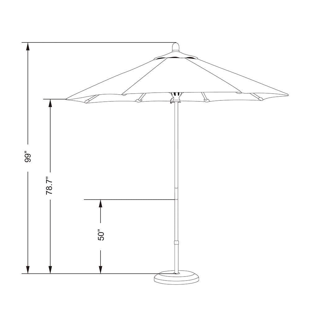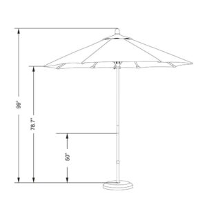 - Umbrella measures 7.5 foot in diameter x 99 inches high