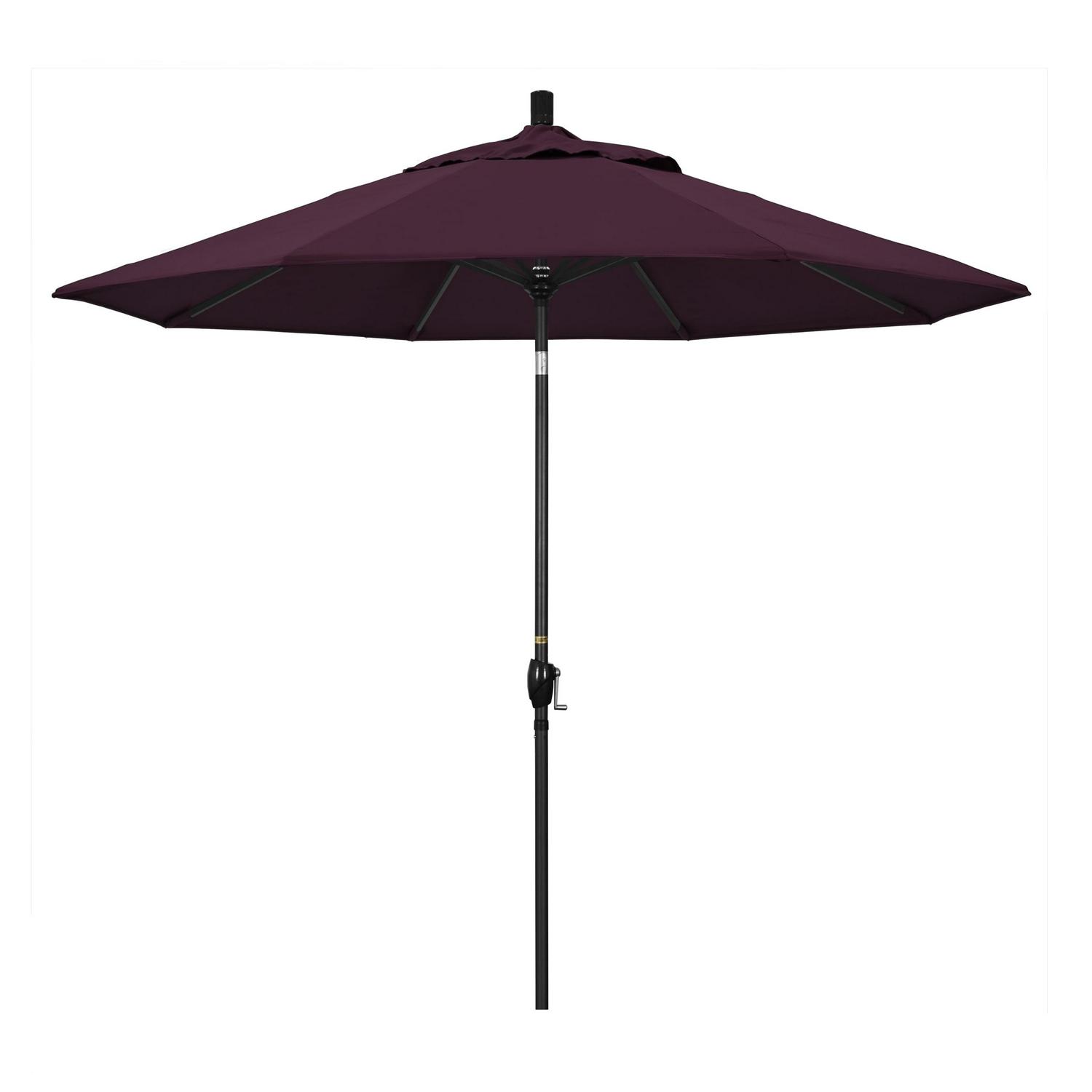 Solid-colored umbrellas graciously spread their aluminum ribs to provide a 9-foot circle of shade on patios and terraces. The umbrella s classic silhouettes add style to their utilitarian features; including easy crank lifting and a push-button tilt to shield you from orbiting suns or annoying neighbors. This umbrella also features Pacifica fabric, a solution-dyed polyester fabric that has been designed and perfected by California Umbrella for the use with our quality made umbrellas. This umbrella also features Pacifica Fabric, which is our house blend solution-dyed polyester fabric perfected for use with our quality umbrellas and featuring a 4 year fade resistance warranty.