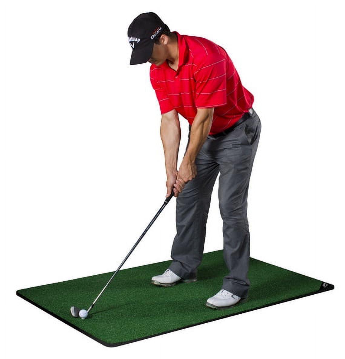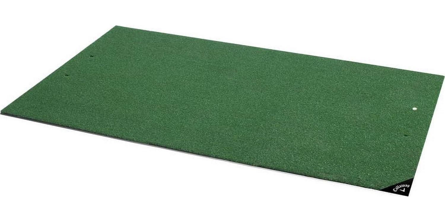 The Callaway Pro Series Hitting Mat features a large 3′ x 5′ hitting surface and offers “commercial” grade quality that you’d find at a driving range. The true-turf surface and premium backing simulates a real fairway and creates additional padding to protect clubs and soften the impact.