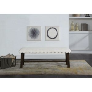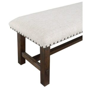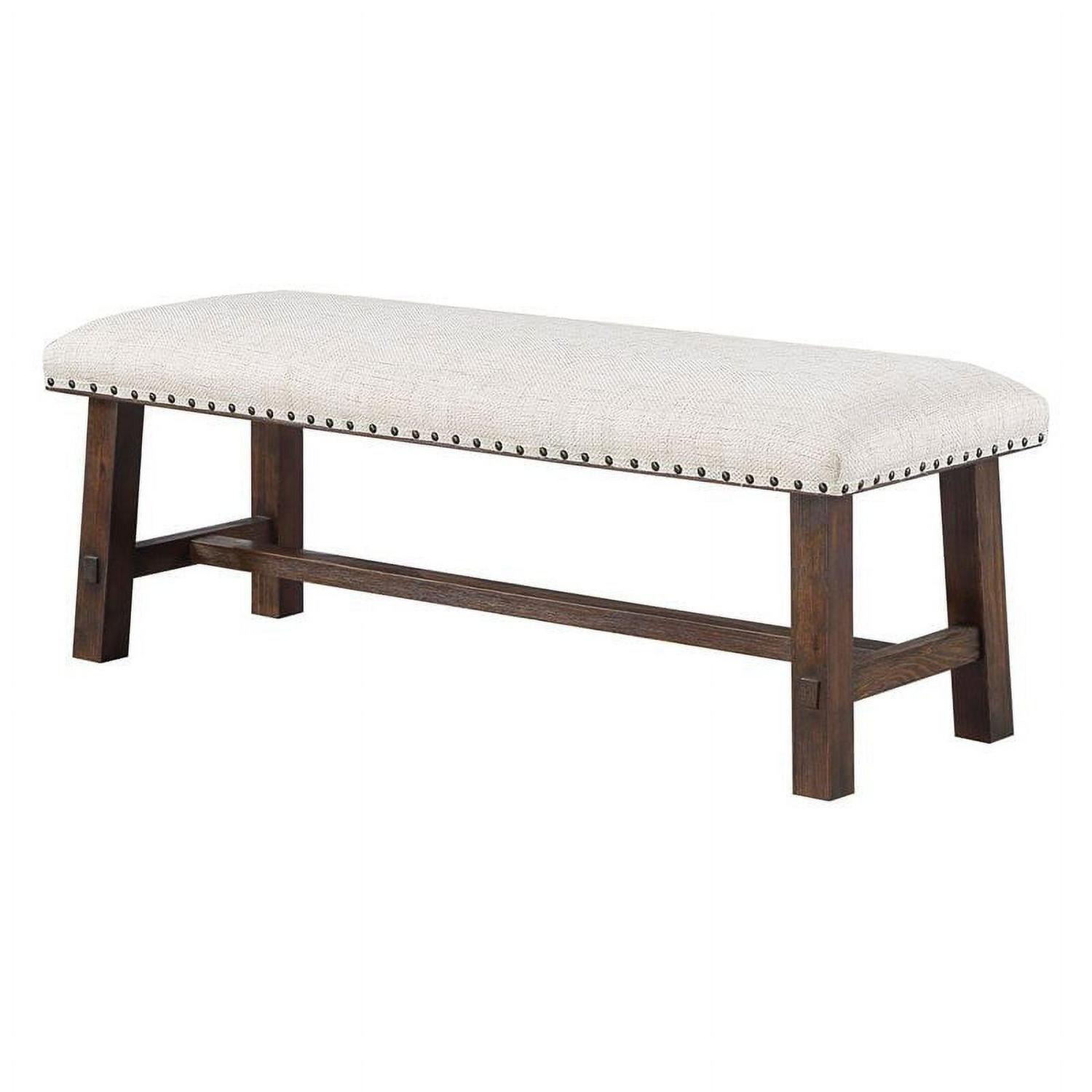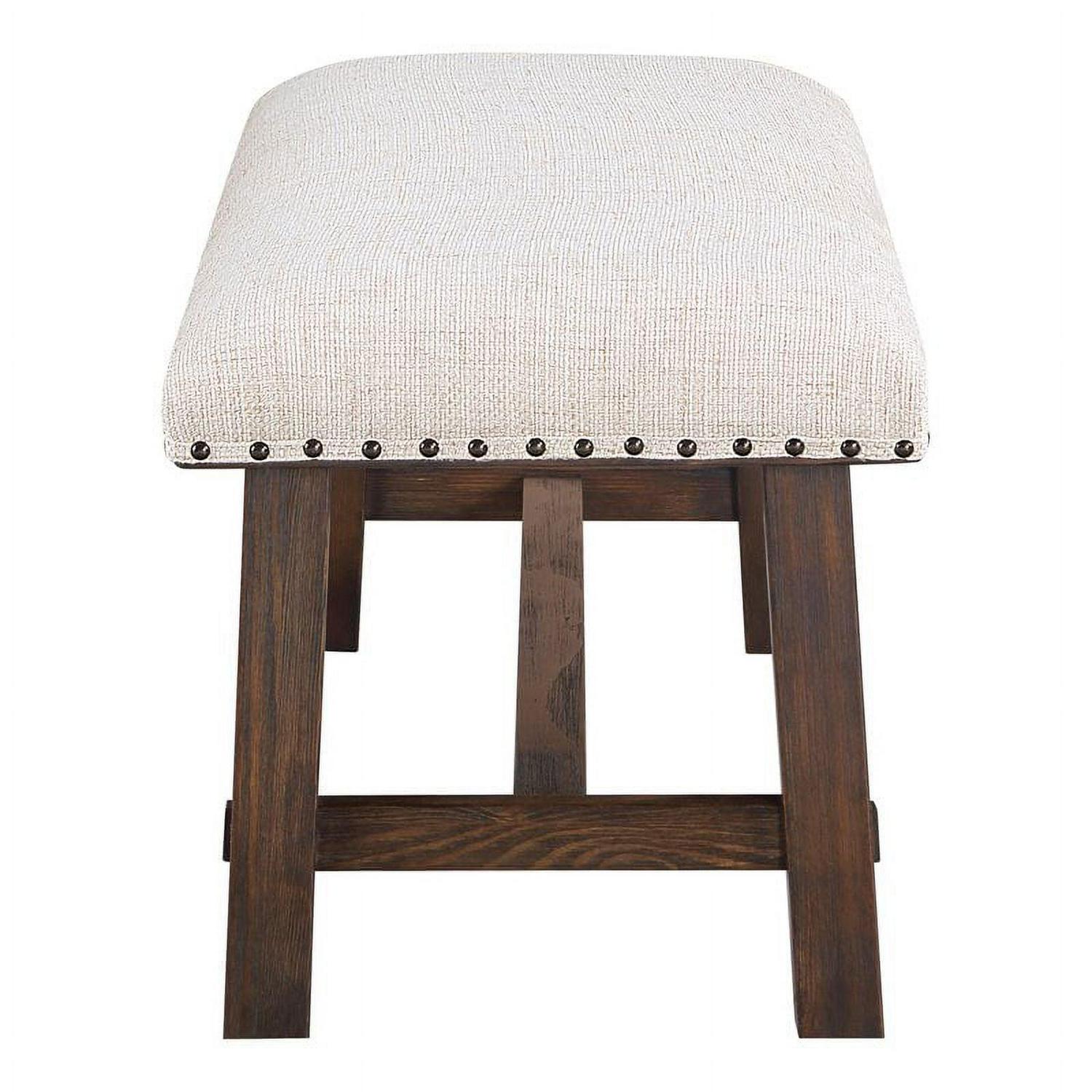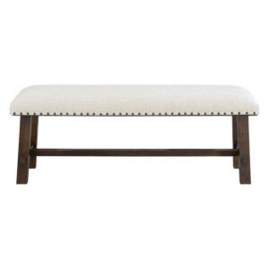 Callen Bench with Walnut Frame and Bronze Nailhead Trim in Linen White Fabric Add sophisticated appeal to your entry, dining room or guest room with the versatile Callen Bench. Perfect for adding definition to an entry. Ideal for giving that finishing touch to a cozy guest room and a smart way to add extra seating in the dining room. Create a winning solution to any seating whim. Attractive mortise and tenon frame made of solid wood and tailored nailhead trim keep this design on-point and perfectly in place anywhere in your home.