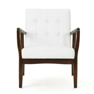 Callisto Mid Century Modern Faux Leather Club Chair with Wood Frame
