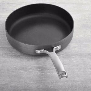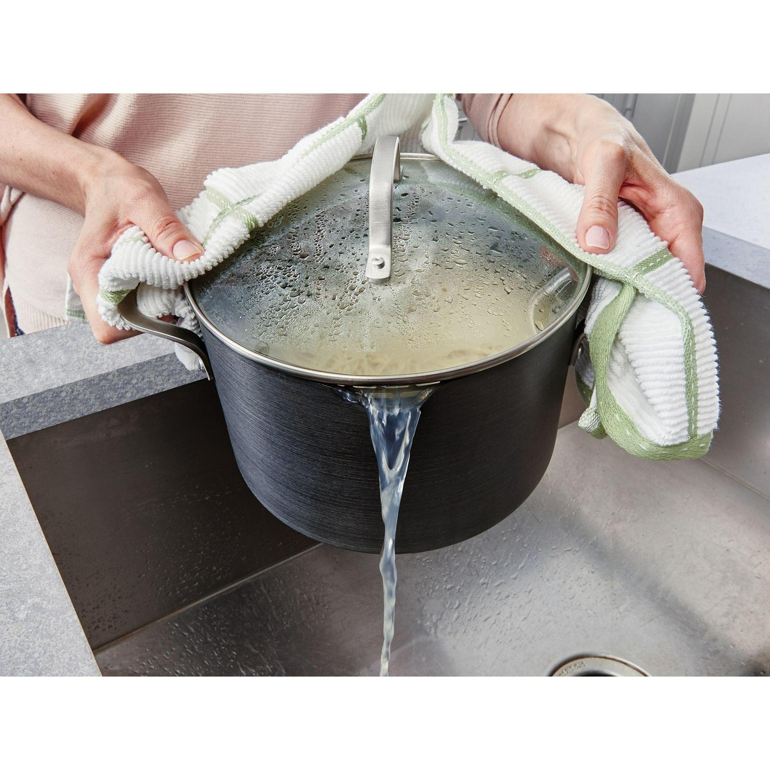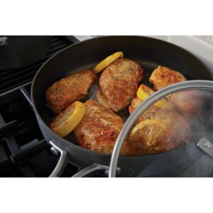 The Calphalon Classic Nonstick 12-Piece Cookware Set has everything you need to get cooking. The set features pots and pans with convenient measuring marks, straining covers, and pour sprouts to save you time in the kitchen. Pans are made with a dual-layer nonstick surface for easy food release and cleanup, and are constructed from durable hard-anodized aluminum for fast, even heating. The nonstick Calphalon cookware set includes a great selection of fry pans, saucepans, a sauté pan, and more, so you can cook all your favorite dishes for family and friends. The set is backed by a full lifetime warranty.