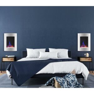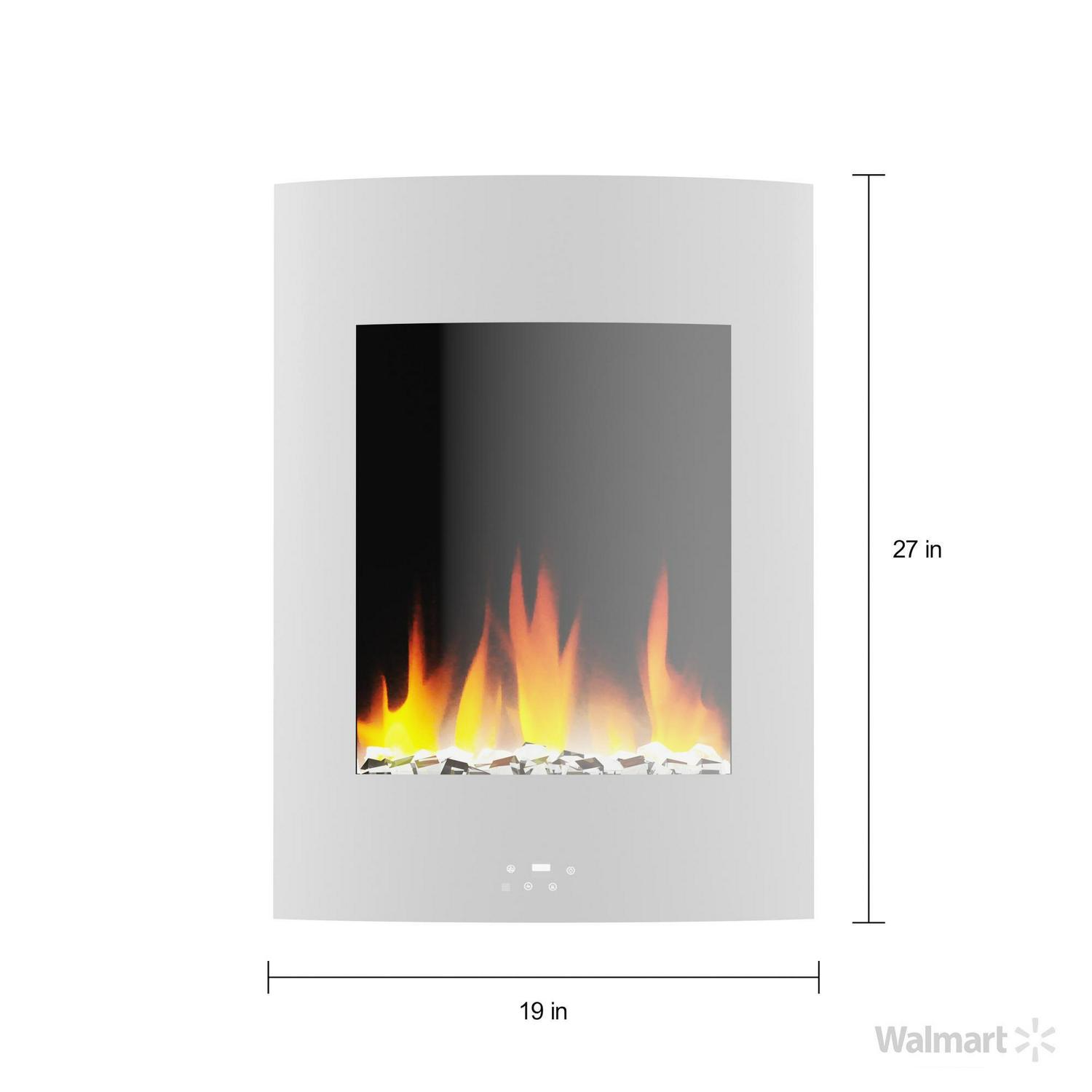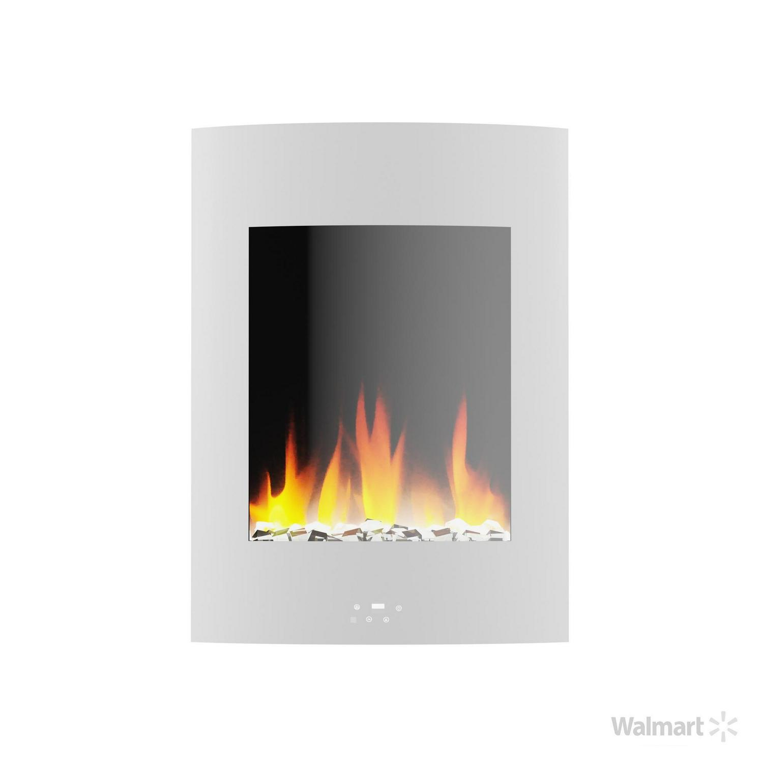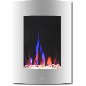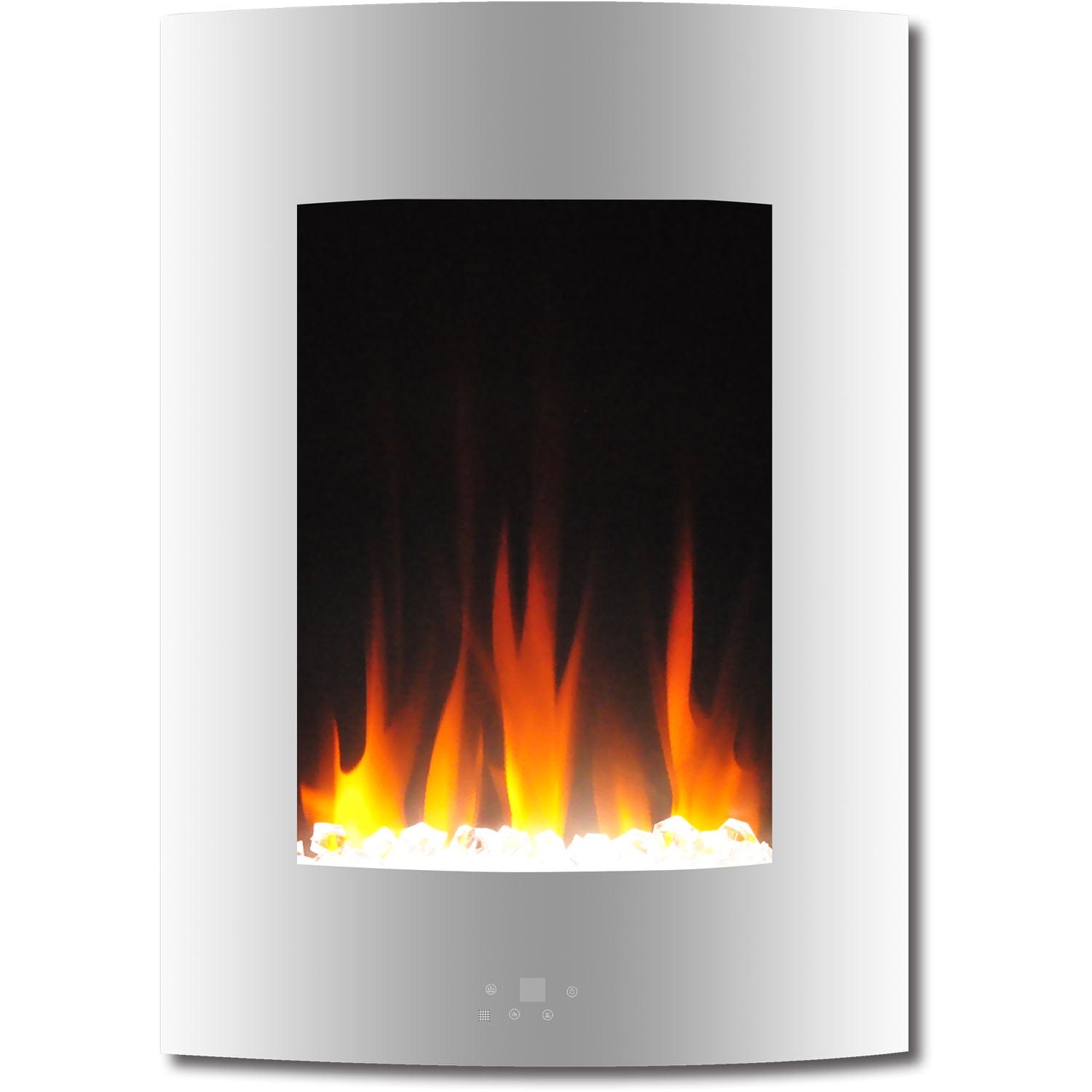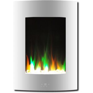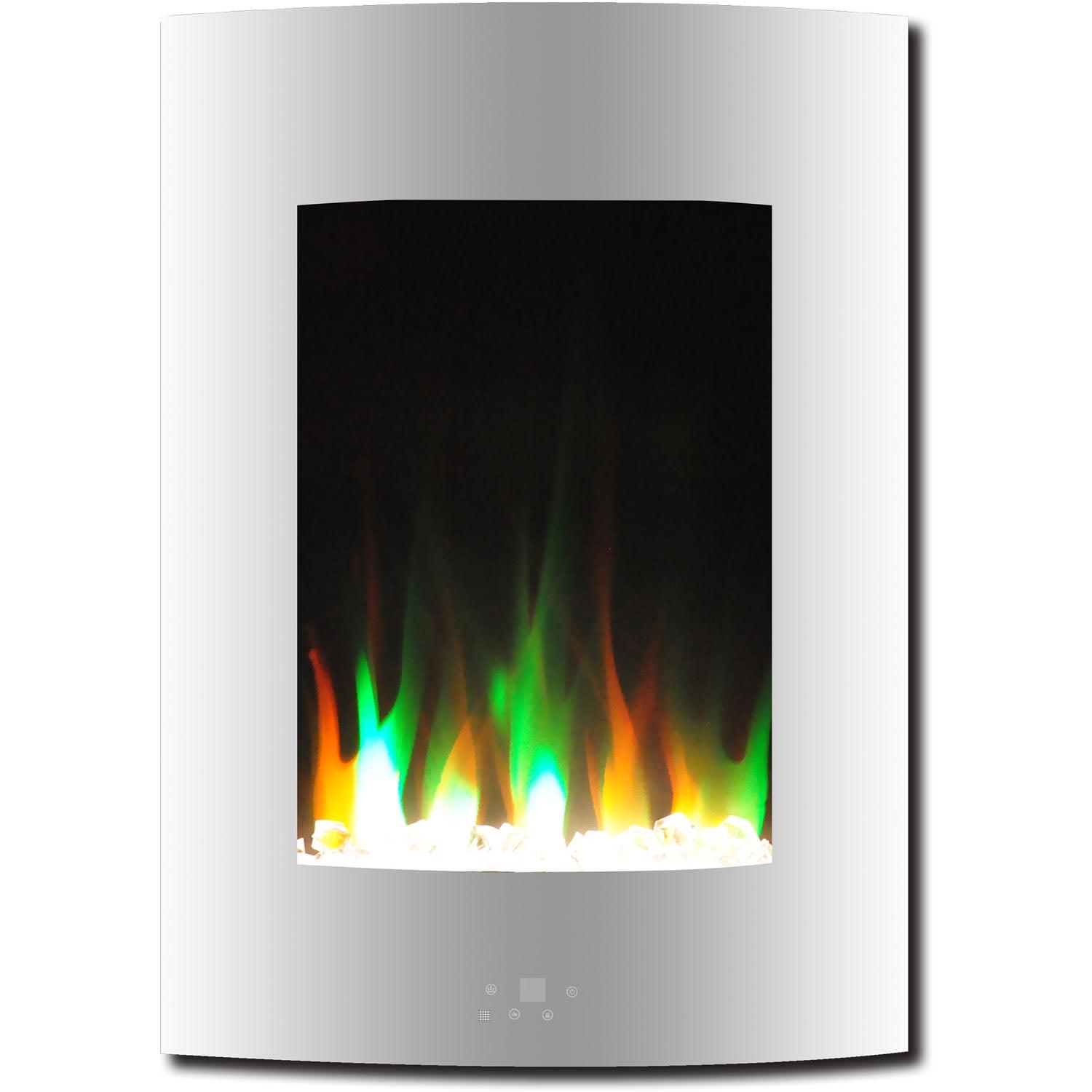 Show off your flair for design and hospitality with the vertical wall-mount electric fireplace from Cambridge. Featuring an array of LED colors and effects over crystal rocks, this fireplace can be adjusted to suit your mood. Whether you re feeling classic orange, bright green, ultraviolet, or all at once; there is a unique color spectrum available that sure to please any aesthetic. The curved tempered glass panel offers stunning panoramic views of the beauty within the firebox. It s an extra design twist that will catch the eye of any passersby. The flames can operate with or without heat, which makes it perfect for warmer seasons and year-round use. A convenient remote control is included so you can easily adjust the settings from anywhere in the room. Its tempered glass screen and low-profile frame add a modern design that can easily integrate with existing wall art. Simply turn it on and enjoy the serene, warm effect that it adds to your home.