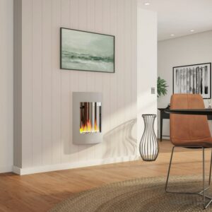 Cambridge 19 In. Vertical Electric Wall Mounted Fireplace Heater with Multi-color Flame Crystal Rock Display, Adjustable Heat, Remote – CAM19VWMEF-1WHT