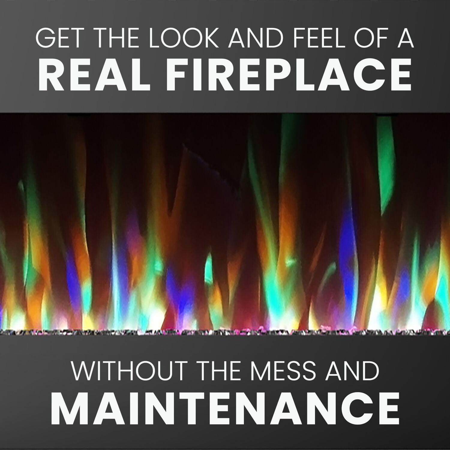 - Get the realistic flame effect without the hassle and maintenance of a real fireplace