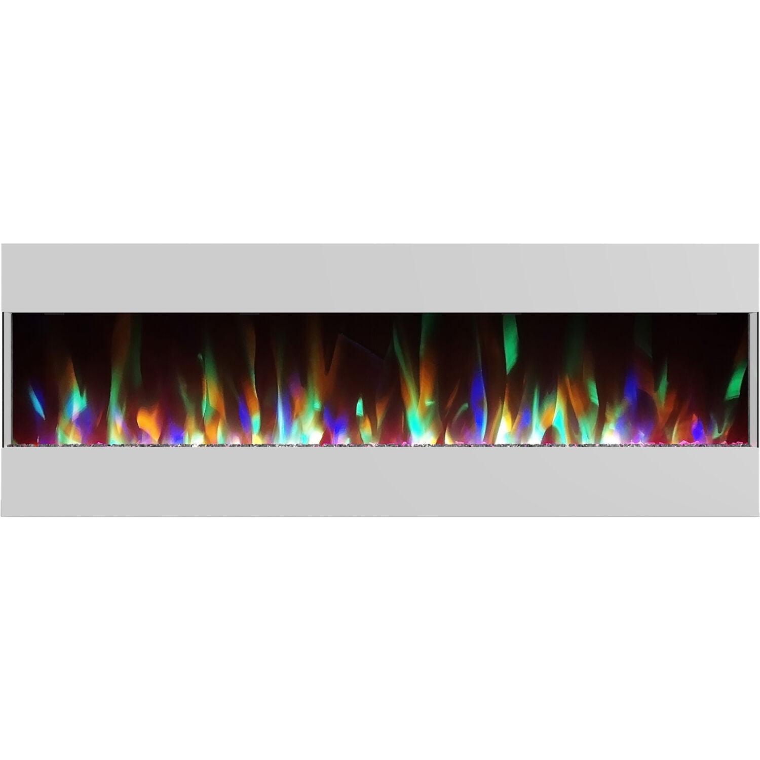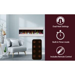 Cambridge 60 In. Recessed Electric Wall Mounted Fireplace Heater with Multi-color Flame Crystal Rock Display, Adjustable Heat, Remote – CAM60RECWMEF-1WHT