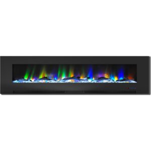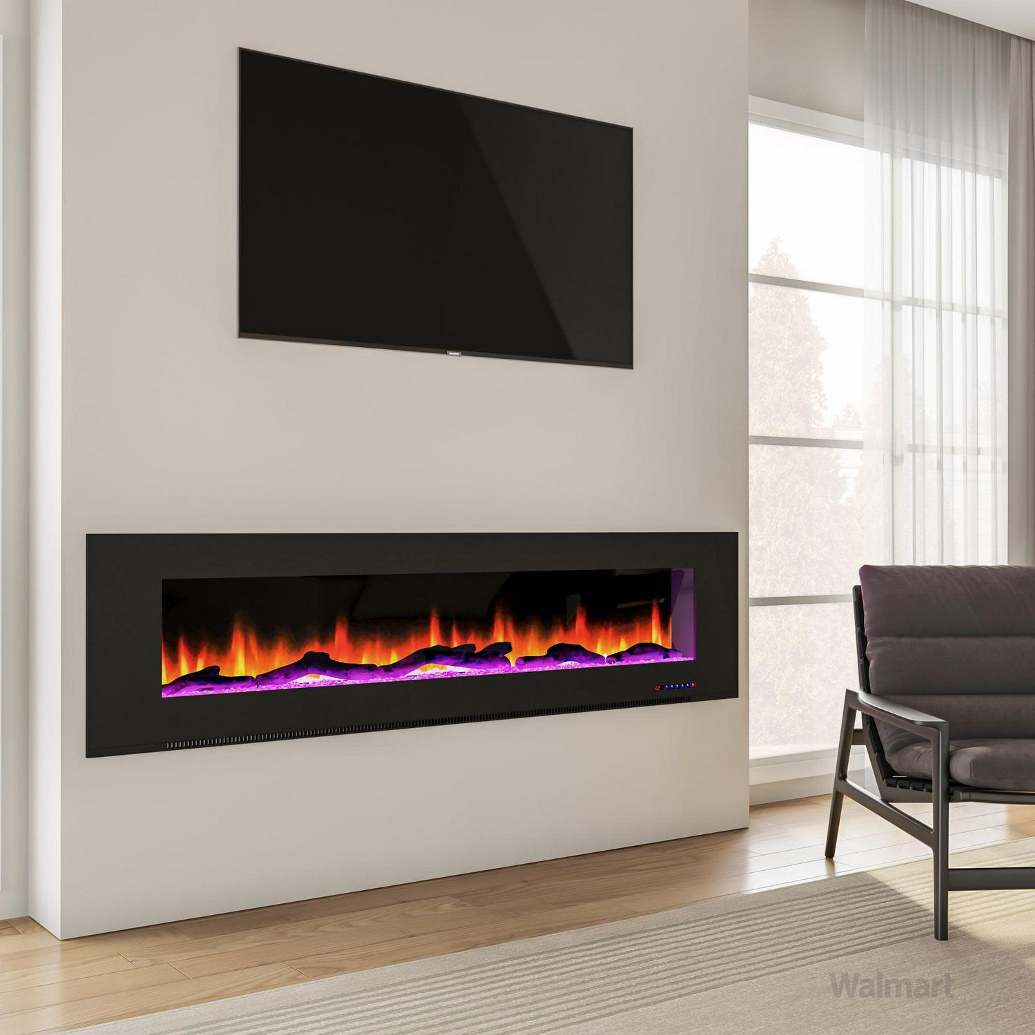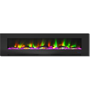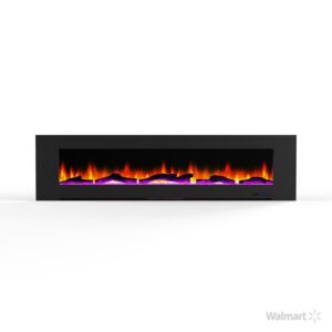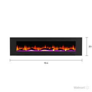 Cambridge 78 In. Electric Wall Mounted Fireplace Heater in Black with Multi-color Flame Driftwood Log Display, Adjustable Heat, Remote – CAM78WMEF-2BLK