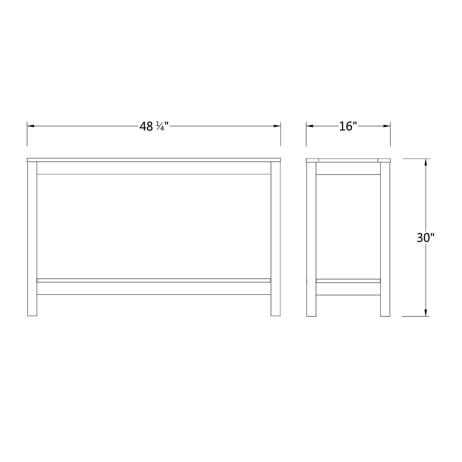 - Assembled Product Dimensions (L x W x H): 48.25 x 16.00 x 30.00 Inches