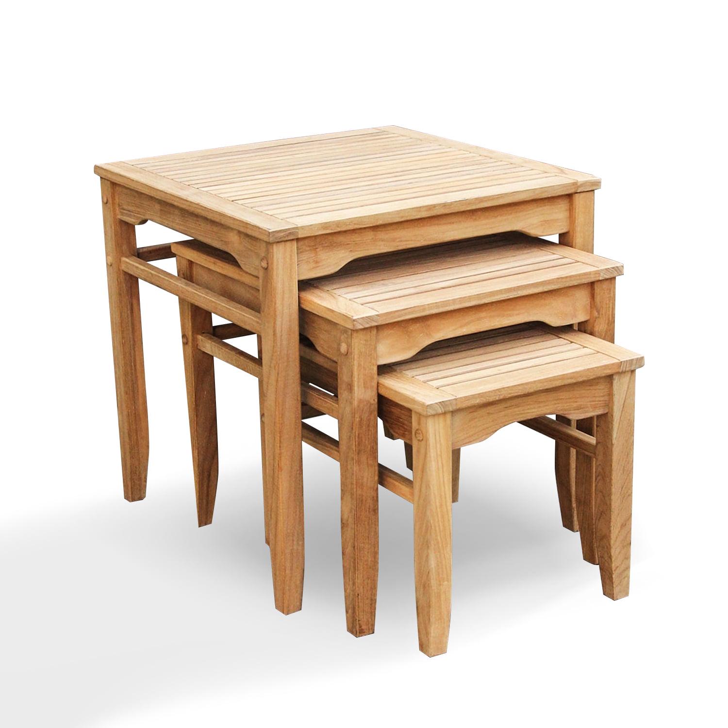 Raise your expectations with this versatile Willem Solid Teak Wood 3-Pack Nesting Table. Use all three together, store the smaller tables underneath or use individually to pair with your patio seating piece. These simple yet beautiful pieces are made of durable teak wood, defining its natural grain of teak with the finely-sanded finish, which will be weathered to a rich silvery patina over time. The rich-looking design will surely enhance your outdoor space.